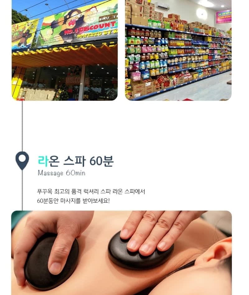 시내 투어 후 쌓인 피로를 싹 풀어줄 라온 스파 60분 마사지가 포함되어 있어요! 전문가의 손길로 몸과 마음을 힐링하고, 남은 여행을 위한 에너지를 충전하세요!