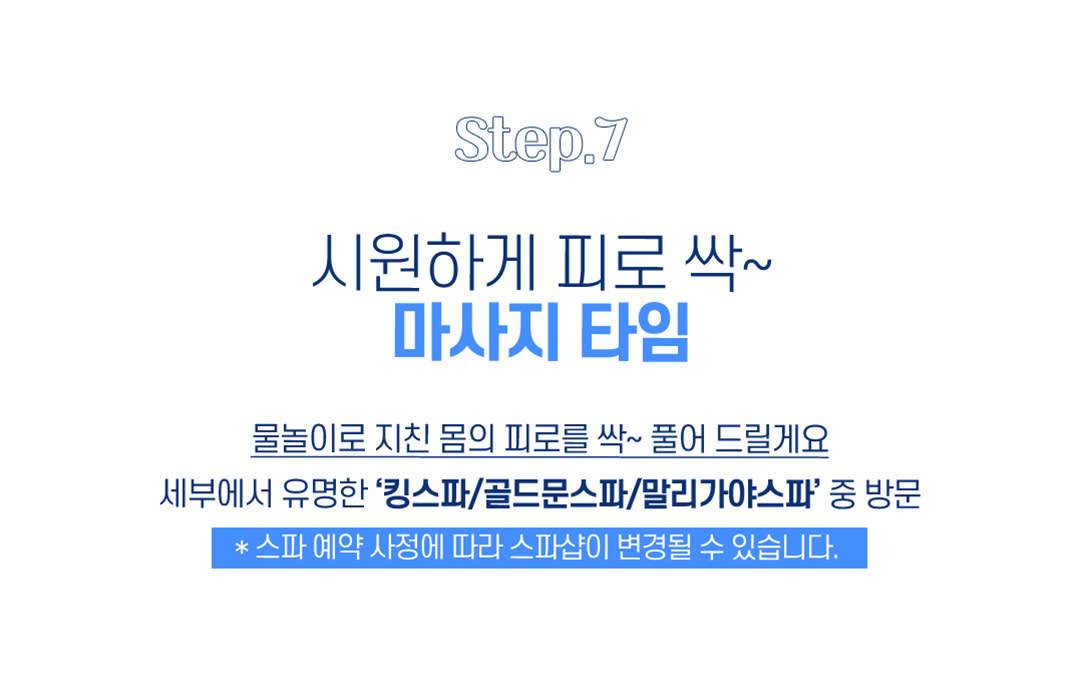 📣[필독]구매전 꼭 확인해주세요 - 7인 이상 단체 요금은 문의 주세요. ▣ 이용약관 당사에서 제공하는 호텔/리조트/항공 예약대행은 현지여행사와 리조트간에 맺어져있는 현지여행사 전용요금으로 취소/환불이 온라인여행사(아고다 등)보다 까다롭습니다. 예약요청후 리조트측에서 컨펌(최종확정)이 나오는경우 취소/환불이 불가하며 이름변경의 경우(가능,불가능은 리조트상황에 따라 달라질수 있습니다) 타인에게 양도 또는 이름변경시 수수료가 발생할수있습니다. ※베드타입 안내 모든 호텔 & 리조트의 방배정의권한은 호텔&리조트측에서 진행하는 부분이라 요청하신 베드타입이 불허 될수 있음을 양해부탁드립니다. ※ 컨펌전 예약요청단계에서는 취소 가능합니다. 다만 항공부분은 캔슬불가함을 공지드립니다. 북앤바이(요금결제와 동시에 이루어지는 확정예약)은 사유를 불문하고 취소가 불가능 합니다. ***투어시 고프로 서비스를 제공하고 있습니다 다만 간혹 에러가 생기는경우가 있으니 이점 참고부탁드립니다*** 당사에서는 서비스로 진행하는 부분은 귀책사유가 없음을 미리 말씀 드립니다.