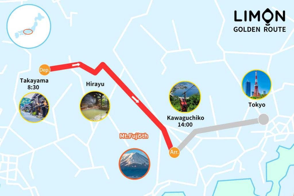 다카야마(출발 8:30) → 가와구치코(도착 14:00)