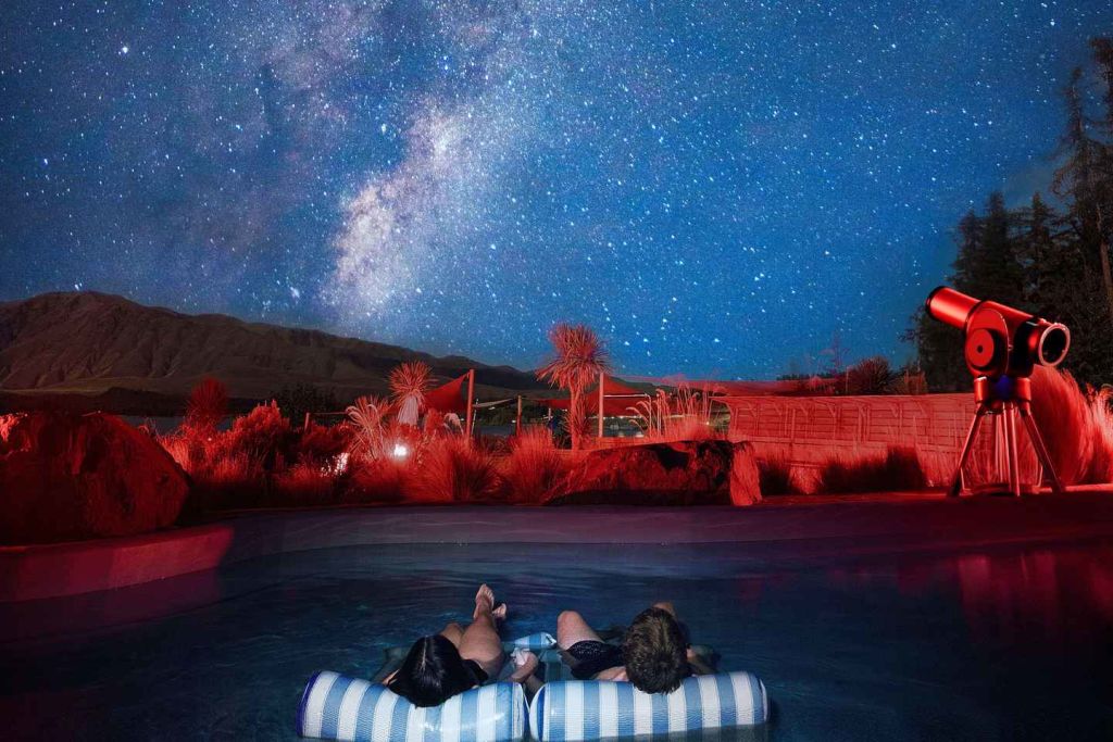 수백만 개의 별이 만들어내는 눈부신 아름다움에 감탄하세요. 온수 수영장에서 휴식을 취하면서 세계에서 가장 맑고 어두운 밤하늘을 깊이 바라보세요. 별 관측을 위한 최고의 장소 중 하나인 아오라키 매켄지 국제 다크 스카이 보호구역을 방문하세요.