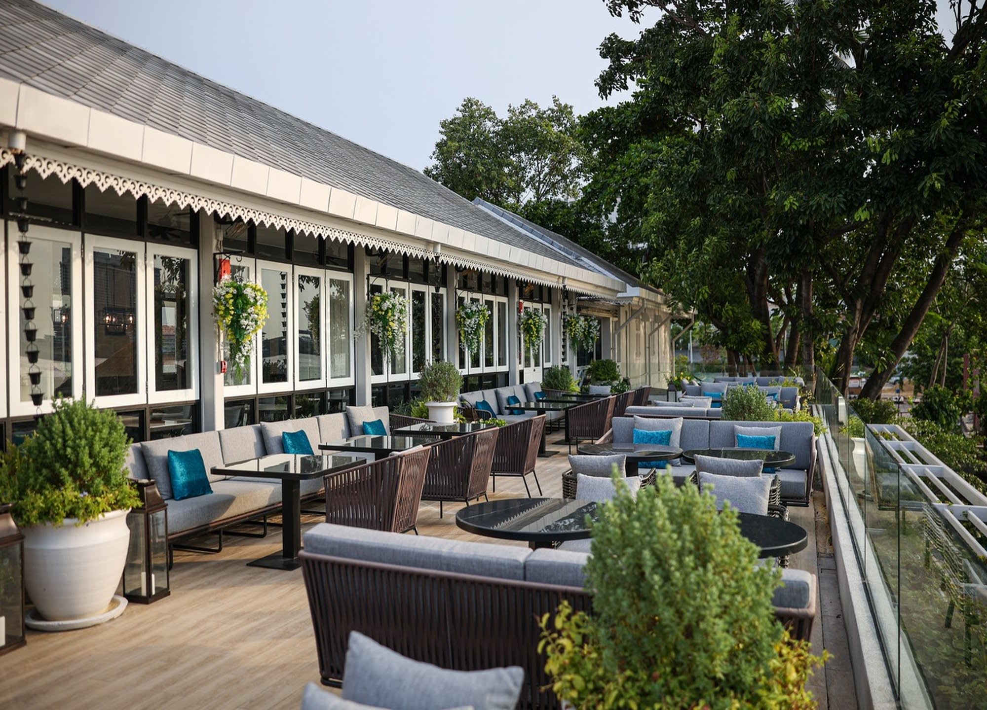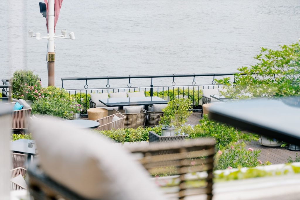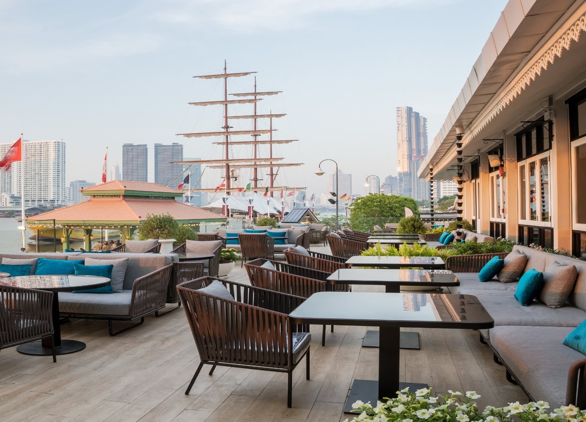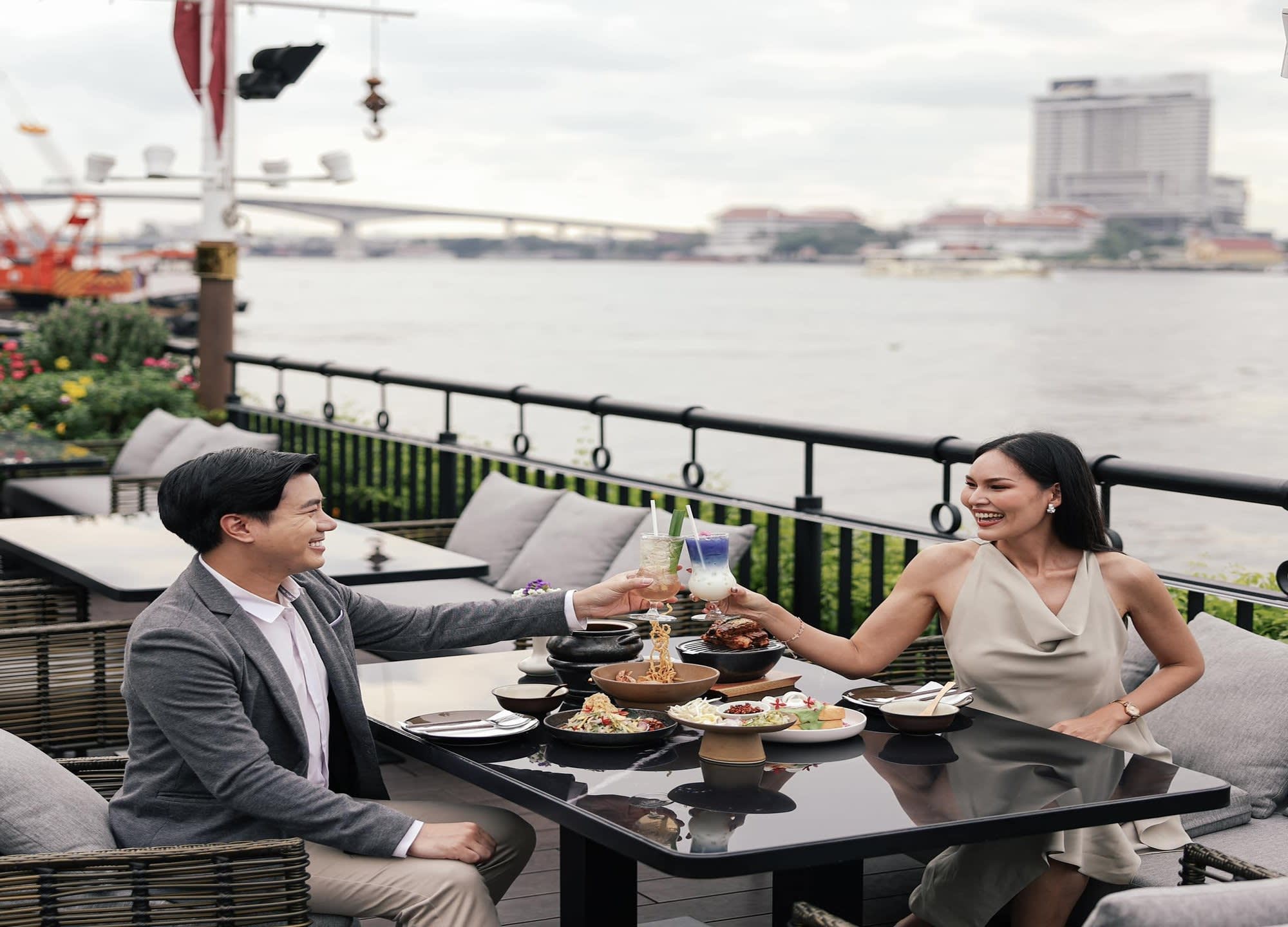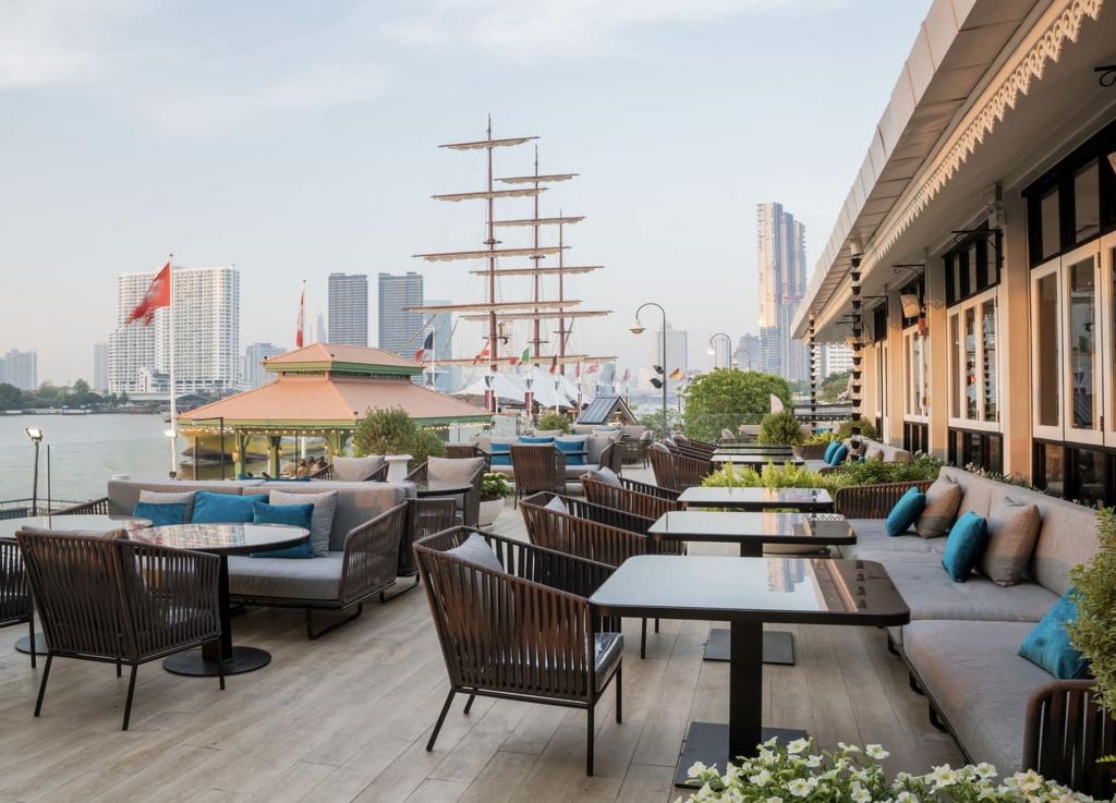 전통 태국 가옥을 모티프로 한 우아한 인테리어와 차오프라야 강의 탁 트인 전망 속에서,