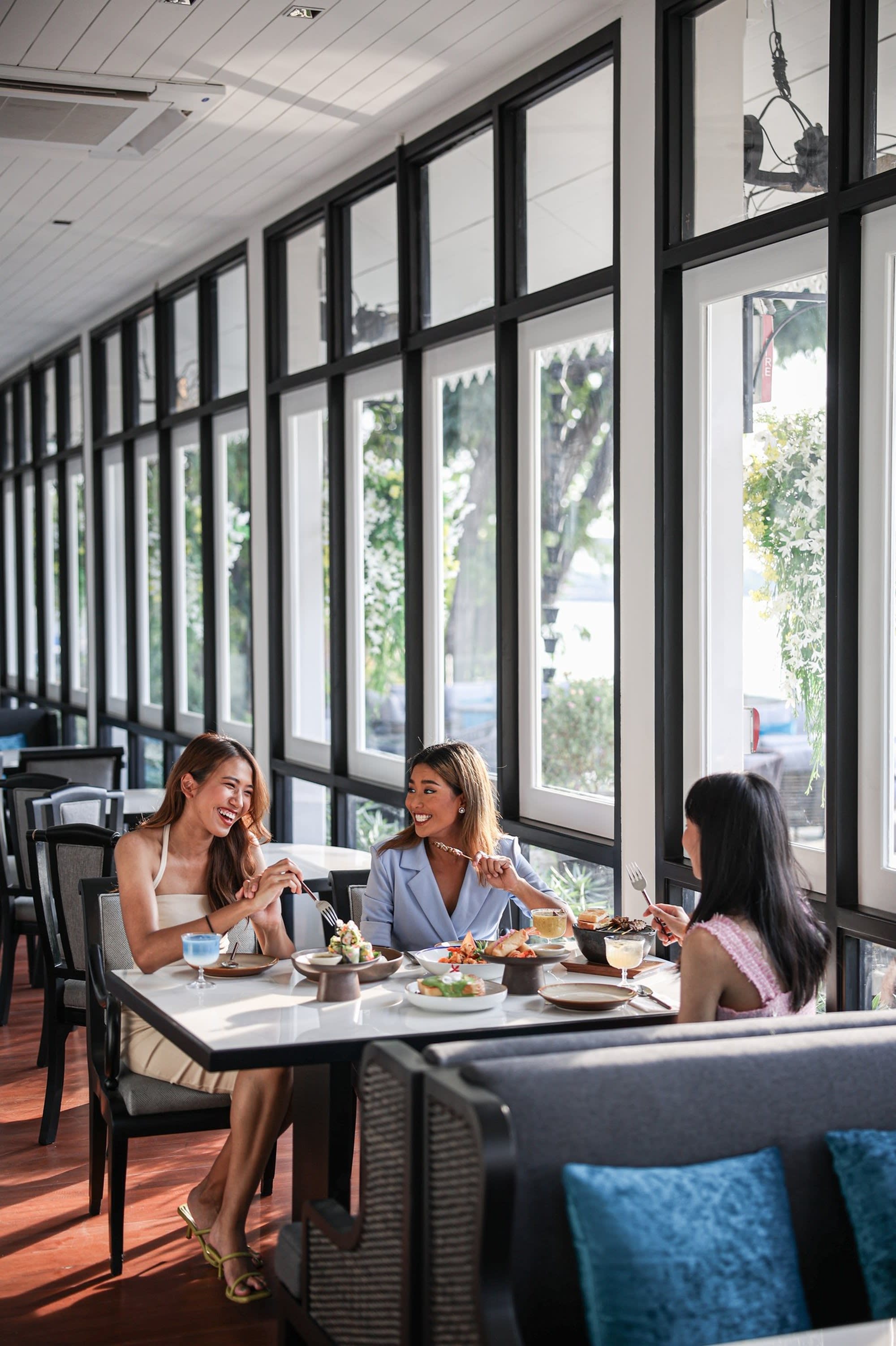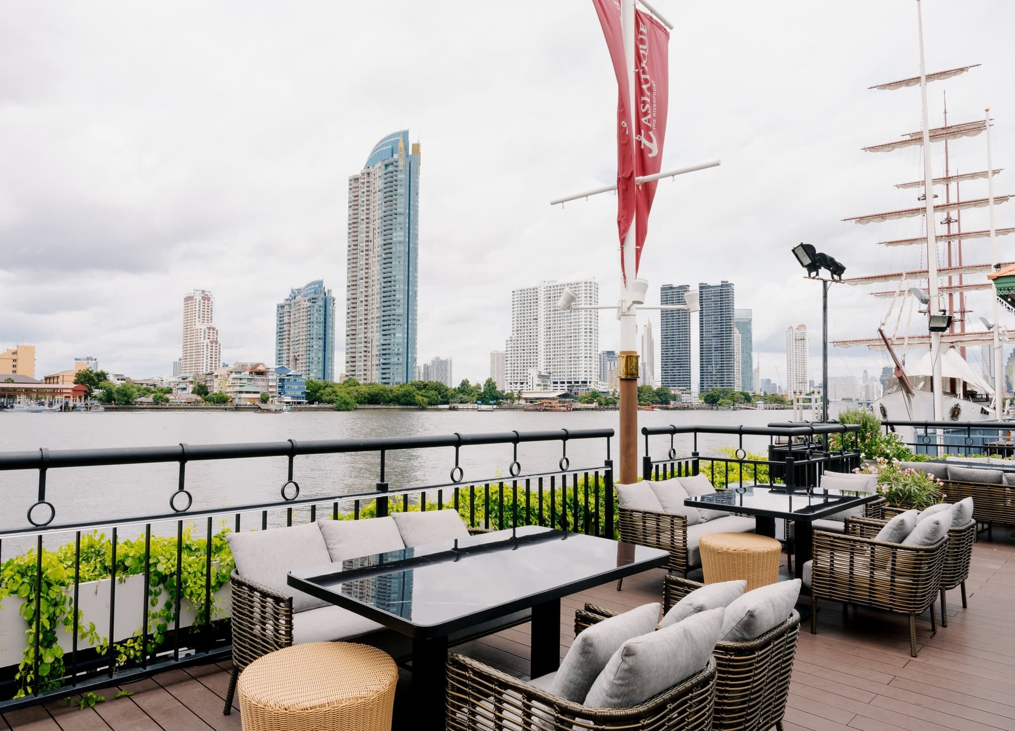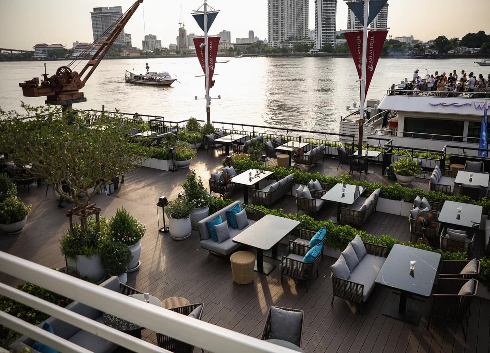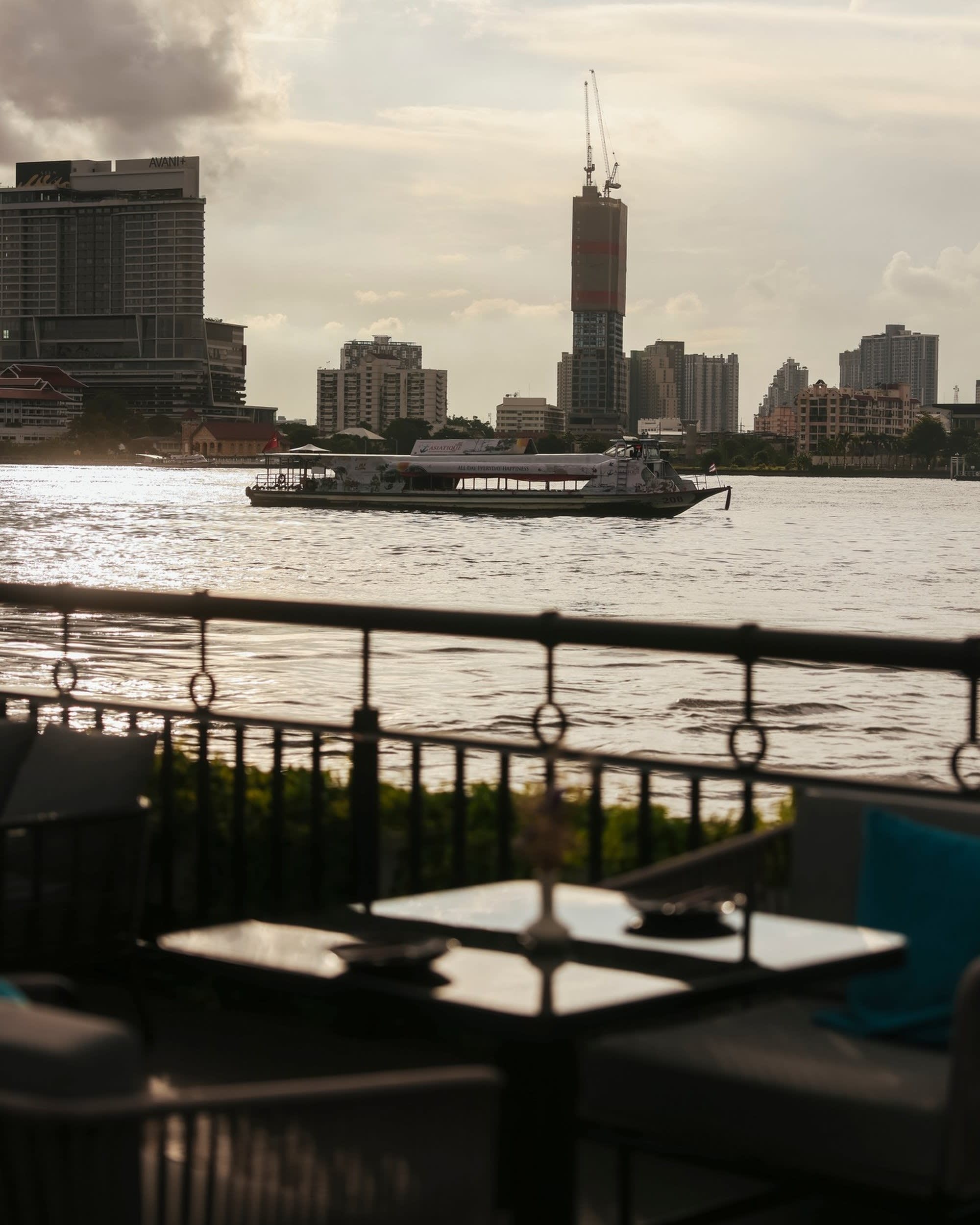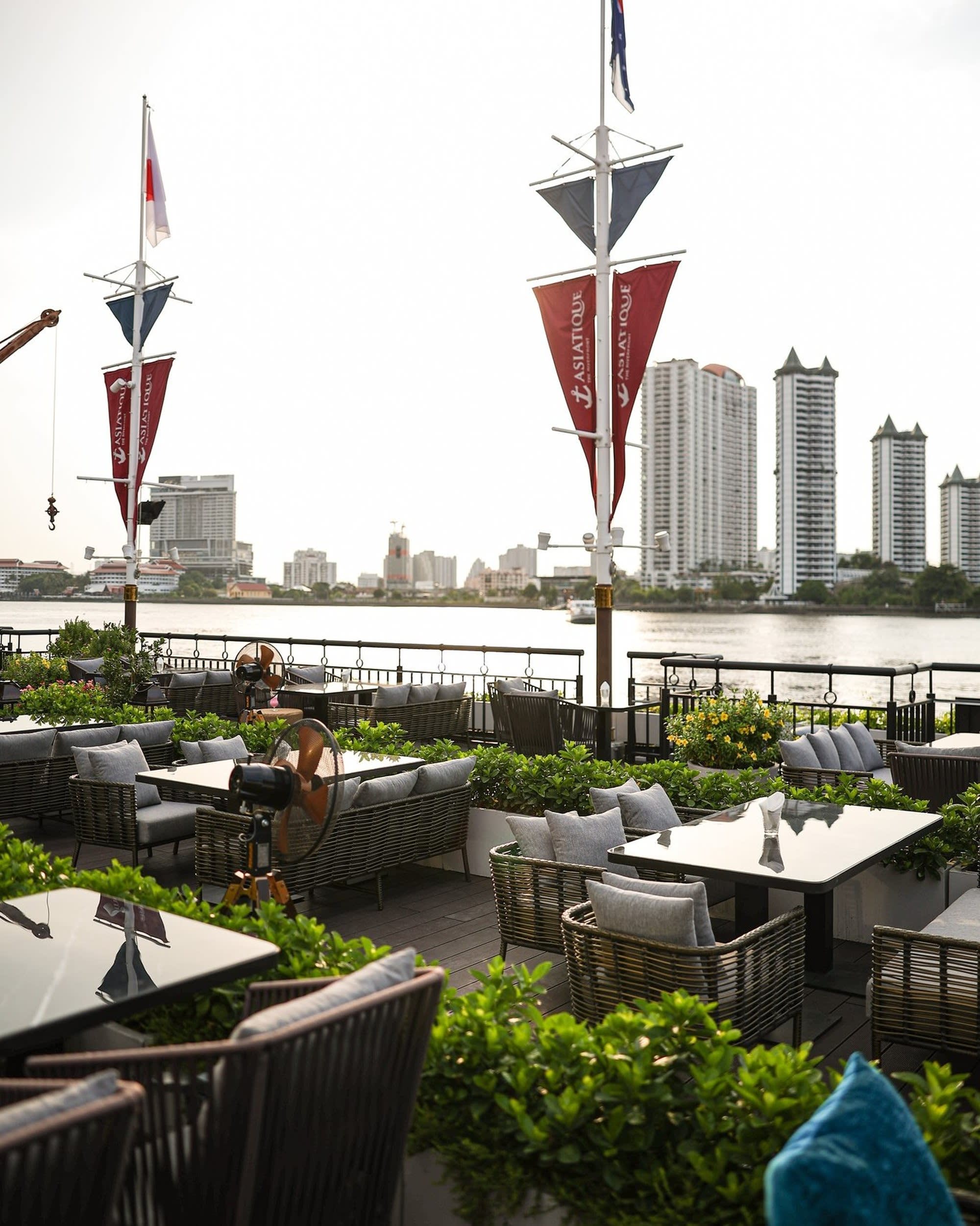 전통 태국 가옥을 모티프로 한 우아한 인테리어와 차오프라야 강의 탁 트인 전망 속에서,