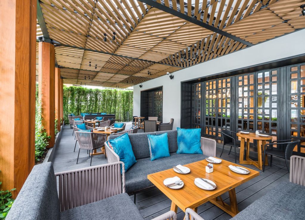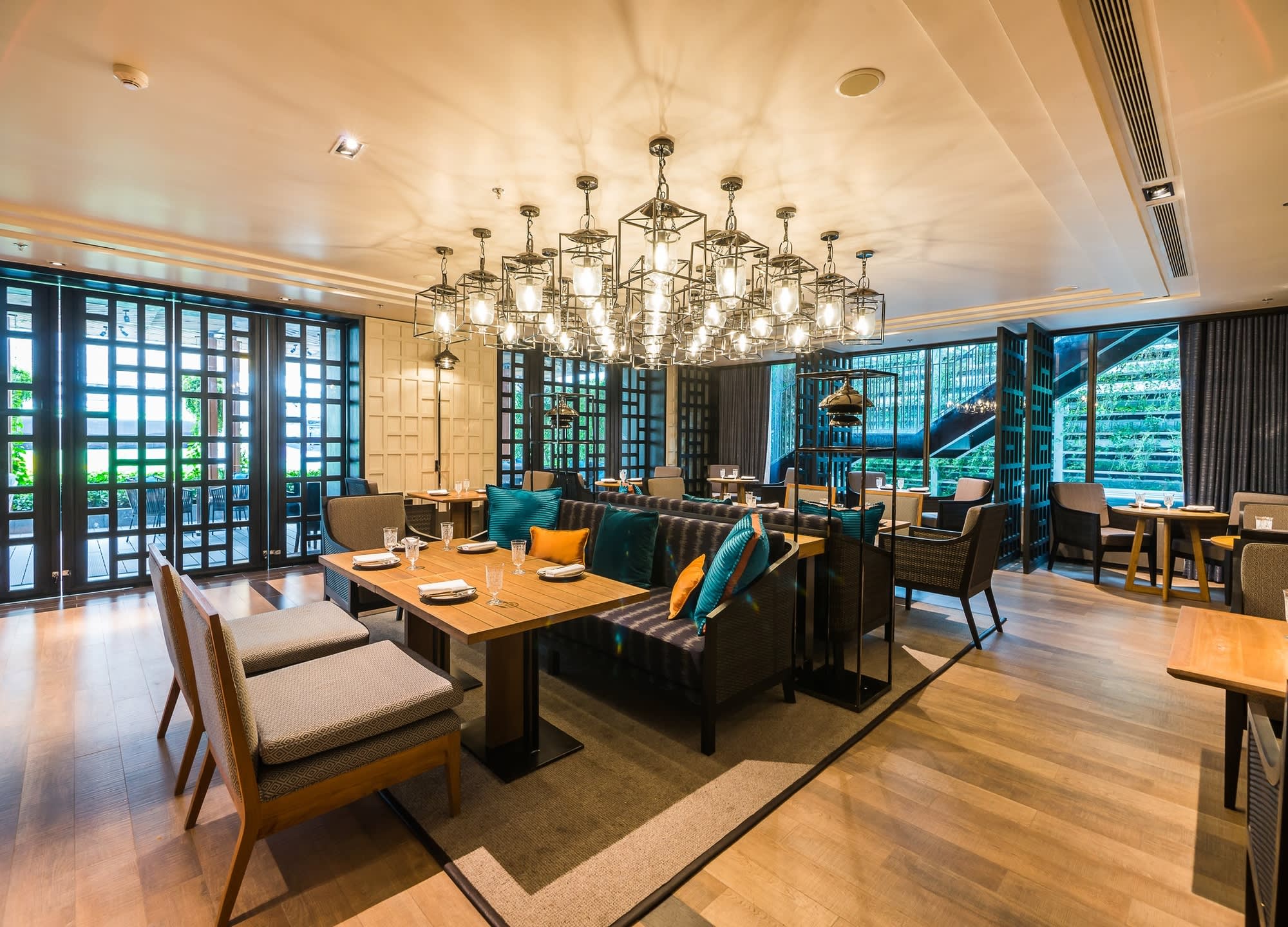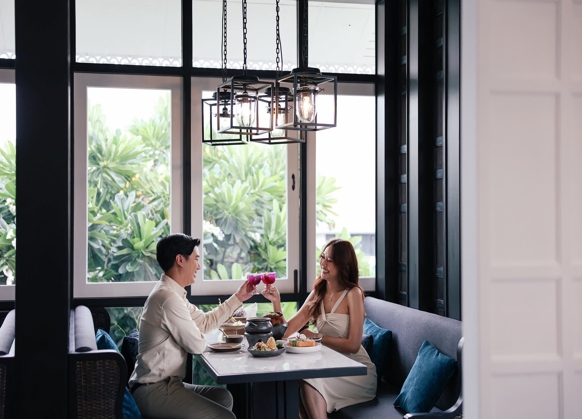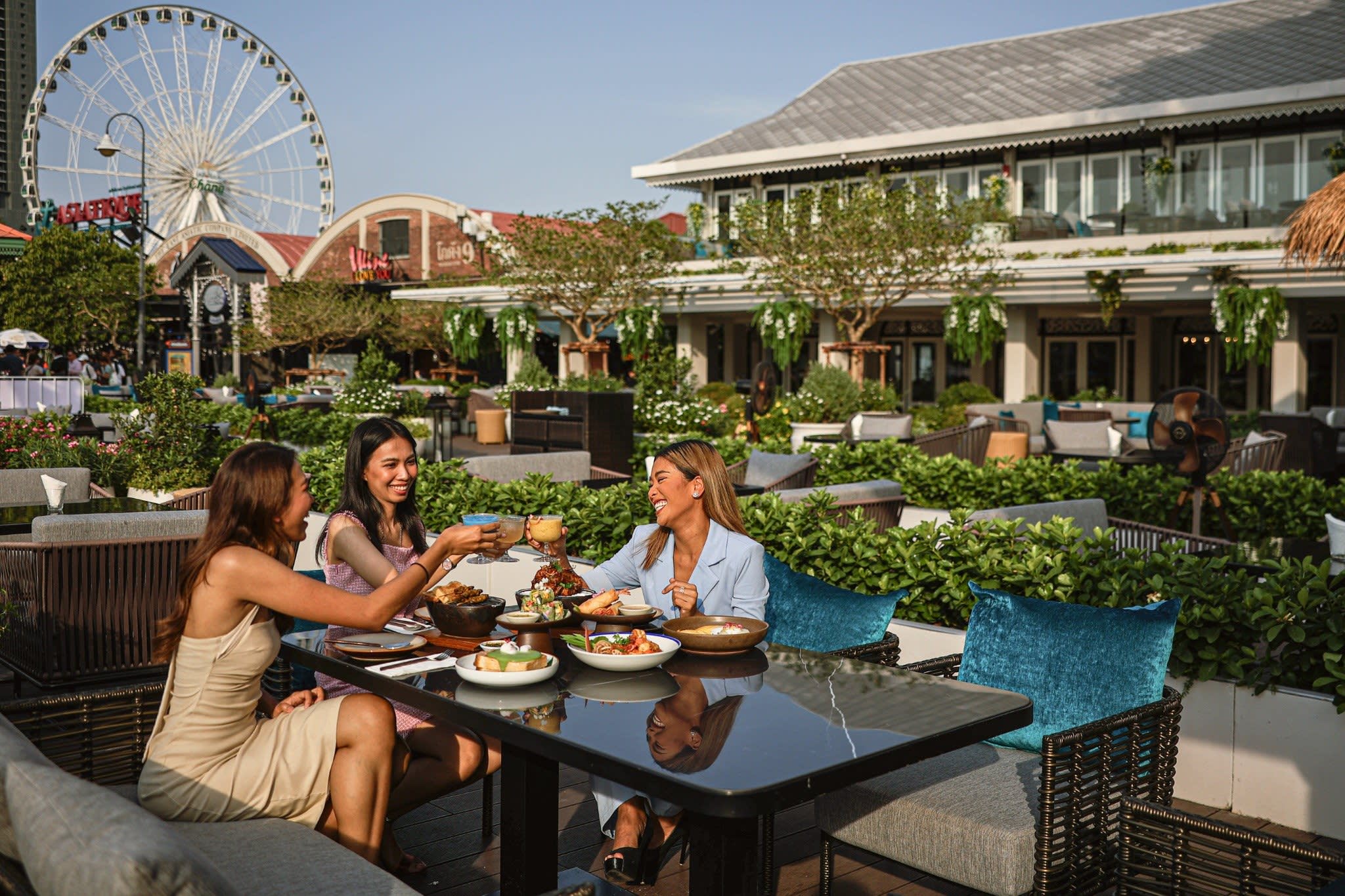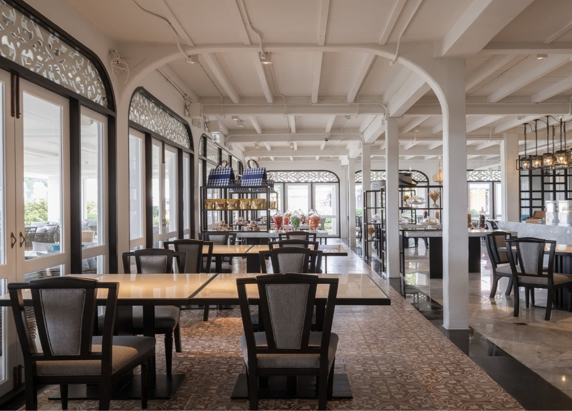 전통 태국 가옥을 모티프로 한 우아한 인테리어와 차오프라야 강의 탁 트인 전망 속에서,
