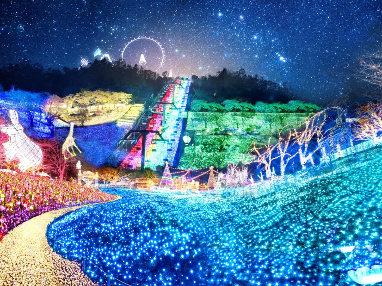 * 수상 경력에 빛나는 일루미네이션을 감상해 보세요! 리프트를 타고 산 정상에 올라 공원 전체를 조망할 수 있습니다.