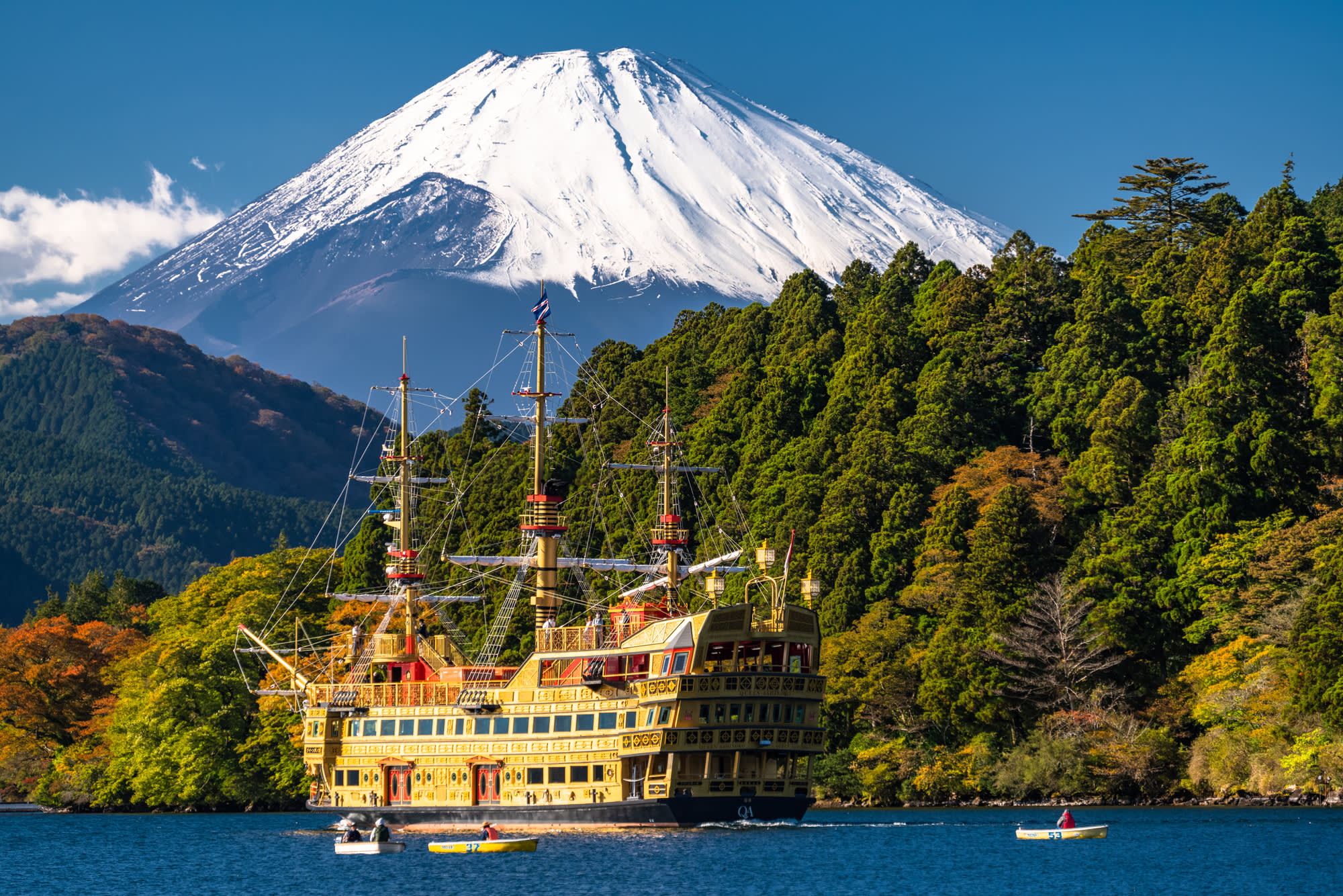 신주쿠에서 출발해 후지산과 하코네의 인기 명소를 방문하는 일일 버스 투어입니다. 신주쿠에서 출발하여 후지산 5合目(2,300m)에 들러 멋진 경치를 감상하세요. 겨울철 도로가 폐쇄되면 후지산 2合目에서 눈썰매를 타거나 오시노 핫카이를 탐험합니다. 일본 최대 규모의 쇼핑몰 중 하나인 고텐바 프리미엄 아울렛에서 약 210개 브랜드 제품을 쇼핑하고 5~15% 할인 쿠폰을 받으세요. 하코네의 오와쿠다니는 화산 활동으로 생겨난 계곡으로, 피어오르는 수증기를 볼 수 있습니다. 하코네 로프웨이를 타고 온천 증기로 삶은 유명한 검은 계란을 맛보세요. 마지막으로 화산 활동으로 형성된 아시노호에서 평온한 풍경을 감상한 후 신주쿠로 돌아갑니다. 투어는 약 11시간 동안 진행됩니다.