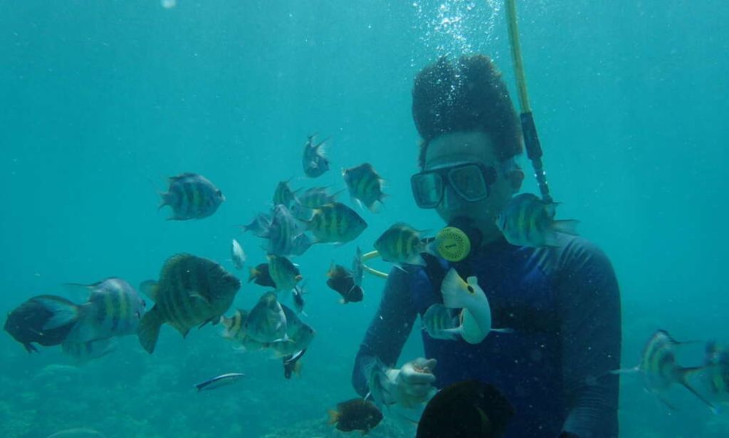 괌 패밀리 비치에서 무거운 산소통 없이 괌 바다를 자유롭게 거닐어 보세요!