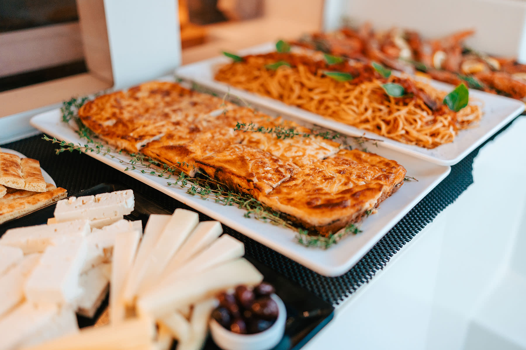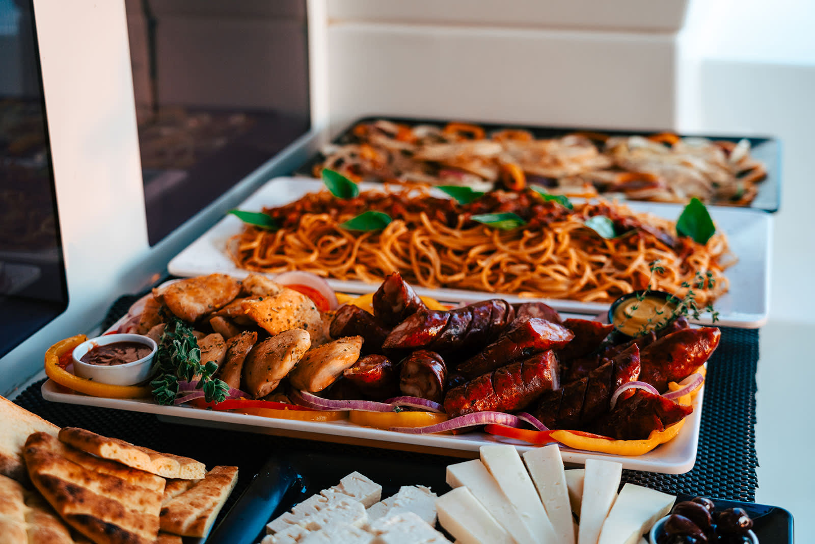* 맛있는 그리스식 뷔페 BBQ 저녁 식사를 즐겨보세요.