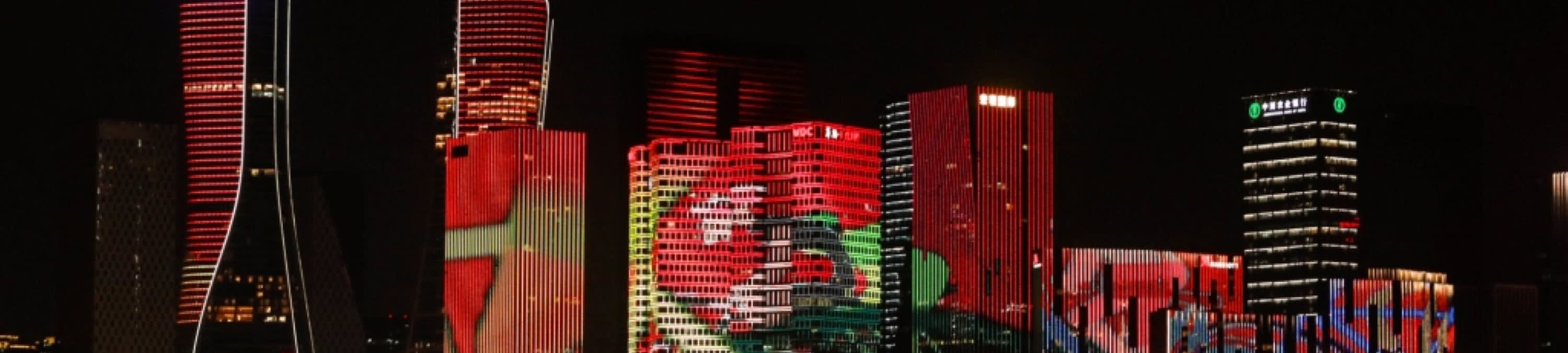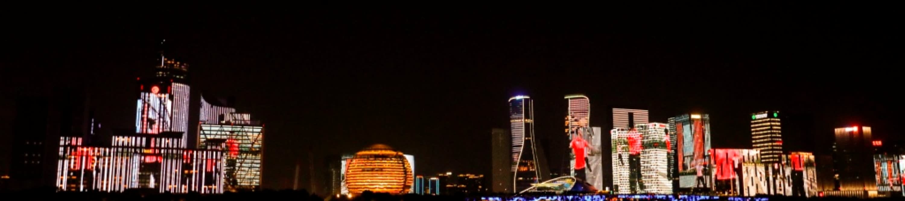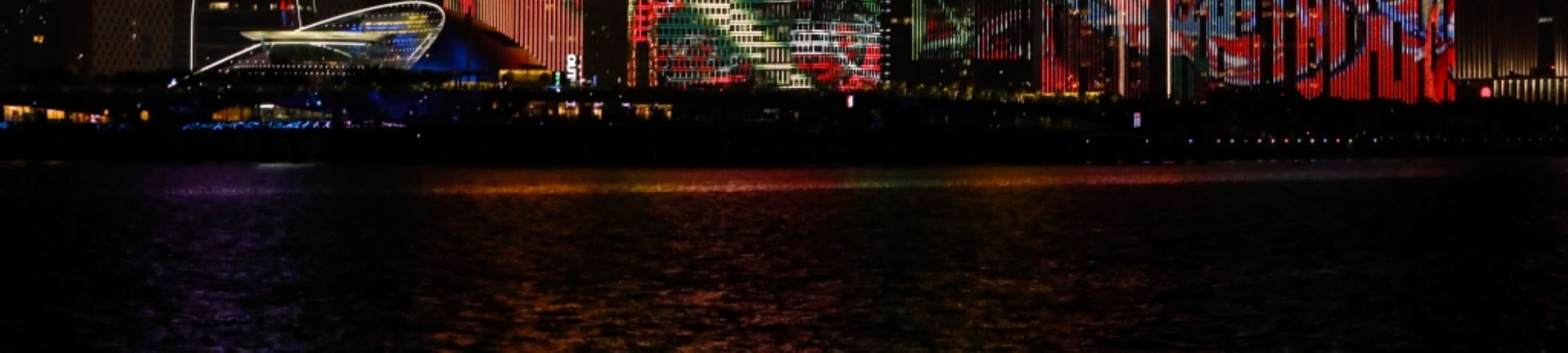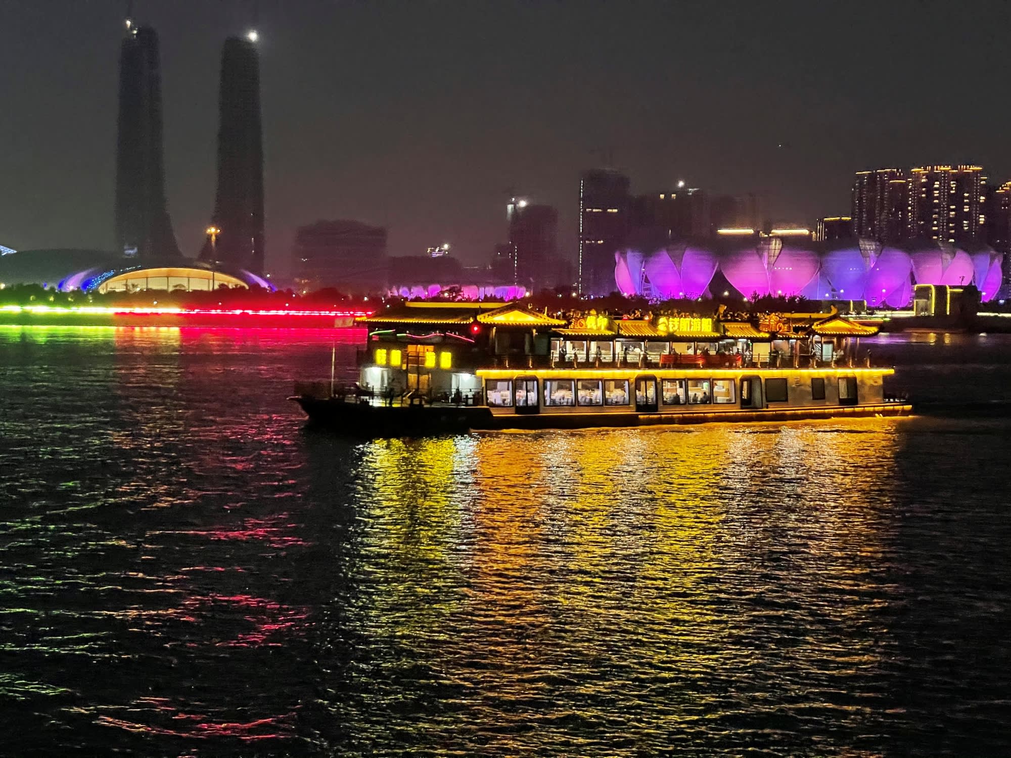 * 빈장 부두에서 배를 타고 첸장룽(钱江龙), 항저우인(杭州印), 시싱대교(西兴大桥), 올림픽 스포츠 센터(奥体中心), 첸장세기성(钱江世纪城) 등의 랜드마크를 지나며 첸장 신도시(钱江新城) 야경을 감상하고, 푸싱대교(复兴大桥)와 첸왕사차오(钱王射潮)를 멀리서 바라본 후 다시 부두로 돌아옵니다. 밤하늘 아래 강 양쪽 고층 건물과 네온사인이 어우러져 첸탕강(钱塘江)만의 독특한 풍경을 선사합니다.