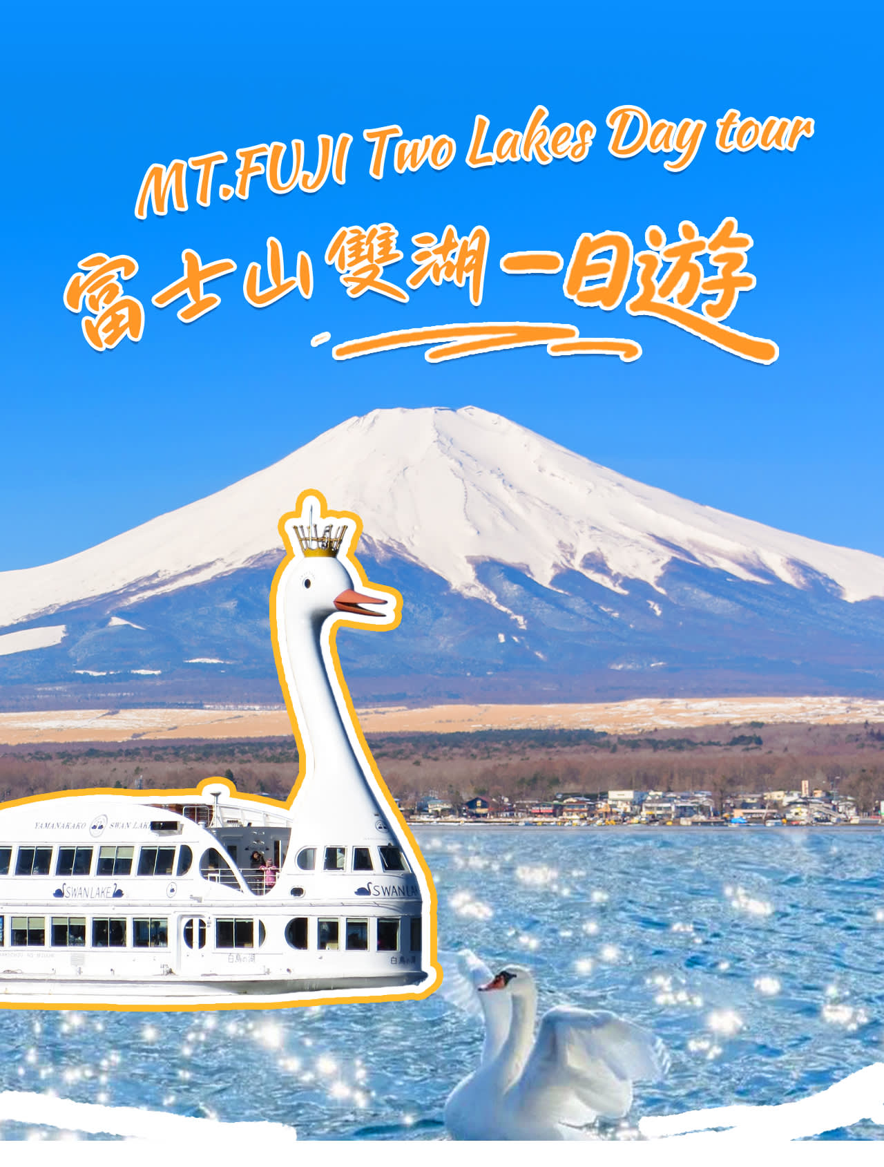 야마나카 호수 백조 유람선 또는 온천 체험 꿈결 같은 백조 유람선을 타고 호수의 아름다운 풍경을 감상하세요. 당일 유람선에 참여하시는 고객님께는 사료 1봉지(백조/물고기에게 먹이 주기 가능)를 드립니다. 이는 증정 품목이며, 당일 품절 시 환불되지 않으니 양해 부탁드립니다. 또는 호숫가 온천을 선택하여 아름다운 자연 속에서 몸과 마음을 치유하세요.