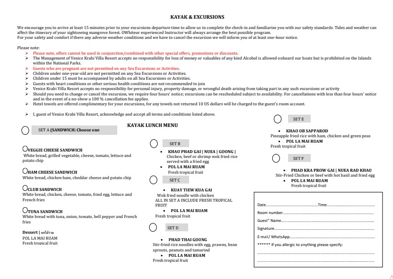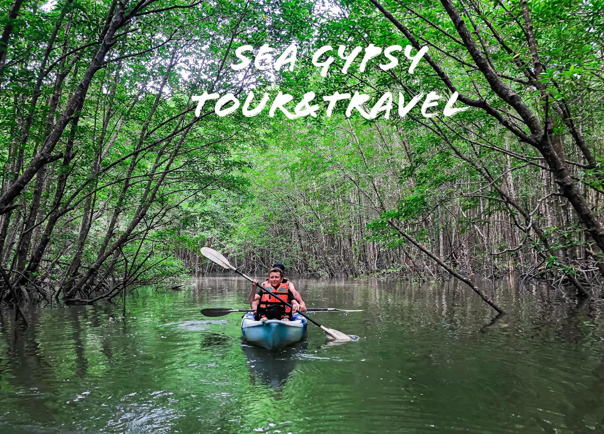 ▶ 주의사항 - ✅ 픽업 관련 안내 무료 픽업 포함 지역 : 아오낭 (Ao Nang) 타 지역은 추가요금이 발생해요. (350바트/차량) 지역에 따라 추가 픽업 비용이 발생하거나 픽업이 불가능 할 수 있어요. 추가비용 발생 혹은 픽업 불가에 대한 내용은 별도 안내를 드려요. 픽업 없이 직접 방문하시는 경우 Sea Gypsy Tour & Travel 로 이동해 주세요. [Sea Gypsy Tour & Travel 위치 확인](https://maps.app.goo.gl/kyRUqMS8eZi2D5Wt7) - 🍽️ 점심 식사 안내 Na Mi Chay Cafe 에서 점심 식사가 포함되어 있어요. 예약 시 반드시 메뉴를 선택해 미리 알려주세요. (미선택 시 무작위로 제공) - 🔸 그 외 안내사항 직접 카약 노를 저으며 진행되는 투어예요. 고혈압, 임산부, 천식, 뼈질환 환자등은 본 투어에 참여할 수 없어요. 카약을 타실 때 반드시 구명조끼를 착용해 주세요. 투어 프로그램 내용은 현지 조류 및 기상 상황에 따라 변경될 수 있어요. 투어 당일 수심이 낮아 투어가 불가능 할 경우 업체에서 연락을 드려요. ▶ 아동 정책 만 4세 ~ 11세 아동은 아동요금이 부과돼요. 아동을 동반한 고객님들께서는 자녀분의 안전에 특히 유의해 주세요.