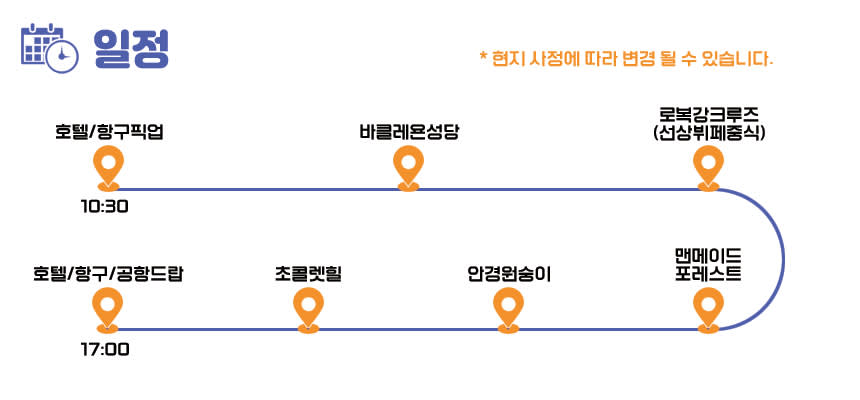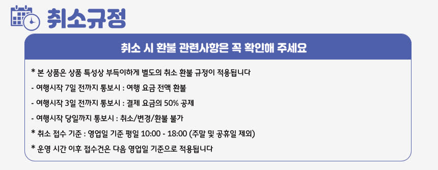 ✅ 예약안내 1. 결제 및 예약 완료 2. 스타인월드에서 개별 메시지 발송 3. 메시지에서 안내 받은 신청서를 통해 상세 투어 내용 전달 4. 상세 투어 일정 확정 및 안내 5. 스타인월드 직영으로 바우처가 필요 없으며 확정한 일정에 맞춰서 행사 진행 (투어 전날 현지 투어 안내문 발송함) 본 상품은 예약이 진행되는 상품이며 최종 확정 안내는 채널톡 연결 후 개별 안내드립니다 연결이 안될시 예약상품은 취소될 수 있습니다 채널톡 : 스타인월드_세부 [한국 스타인월드 근무시간] * 취소 접수 기준 : 영업일 기준 평일 오전 10:00 ~18:00(주말&공휴일 제외) * 운영시간 이후 접수 건은 다음 영업일 기준으로 적용됩니다. - 개별 여행자 보험에 가입을 권장드립니다. - 본 상품은 고객 결제 후 해피콜/해피톡 때 여행 출발에 대한 최종 확정 여부를 결정하며,출발 확정 이후 취소 시, 귀책사유에 따라 약관에 따릅니다. 구매 전, 약관 내용을 반드시 숙지하셔서 신중한 구매 부탁드립니다. - 최소 출발인원 미 충족 시 여행표준약관 제9조에 따라 여행사는 여행출발 2일 전까지 여행계약을 일방적으로 해제하고 소비자에게 통보할 수 있습니다. 여행 참가자 수의 미달로 여행개시 2일전까지 여행계약 해지 통보 시 여행신청금은 전액 환급 또는 날짜변경으로 안내드립니다.