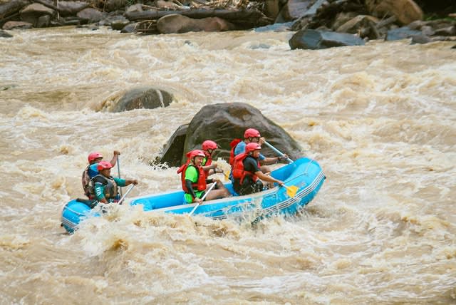 * 화이트 워터 래프팅은 초보자도 안전하게 즐길 수 있으며, 활력을 되찾는 좋은 방법입니다.