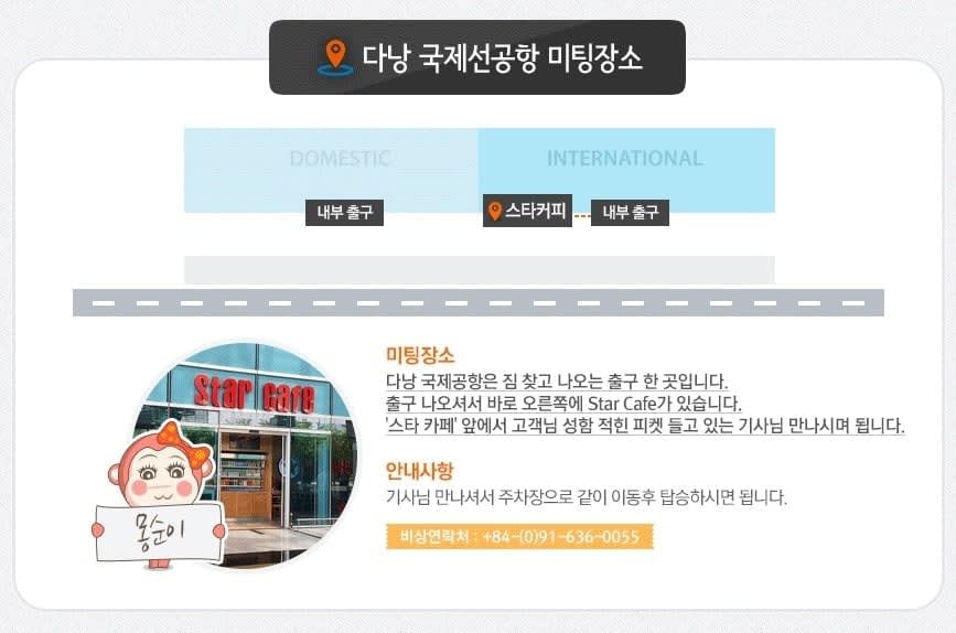 ▶ 이용방법 - 1️⃣ 입국 패스트트랙 (일반) 다낭 입국 수속시, 이미그레이션 통과를 일반입국자 수속라인이 아닌 VIP 창구(항공승무원창구) 를 통하여 입국심사를 받게 됩니다. 항공승무원(캡틴, 스튜어디스등)이 이미그레이션 통과에 우선적 권한을 가지고 있고 항공 승무원이후에 입국 패스트트랙을 신청하신분들이 순차적으로 수속하게됩니다. - 2️⃣ VIP 패스트트랙 (라운지대기/짐찾기서비스/에스코트) 입국수속을 완료 하신 후에 라운지에 대기(물1병포함)하시면 담당 직원이 수하물을 찾아드려요 (수하물 택을 직원에게 주시면 됩니다.) → 수하물 우선 수취는 입국 패스트트랙과 무관하므로 탑승하시는 항공사 수하물 우선 수취 서비스를 신청하셔야 합니다. - 3️⃣ 벤츠 공항 픽업(단독차량) GLB 200 차량 기사분이 기재해주신 비행기 편명 도착 내용에 따라서 픽업합니다. 한국출발날짜/ 공항도착날짜/ 공항도착시간 / 비행기편명을 정확히 기재해주세요 ▶ 체크인 방법 - 입국 패스트트랙 미팅장소 다낭국제공항 입국장에서 에스컬레이터 타고 내려오면 바로앞에 고객님 성함적힌 피켓들고있는 직원 있습니다. 해당 직원분에게 성함 알려주시고 안내받아 이용해주시면 됩니다. - 벤츠 공항픽업 차량 미팅장소 짐찾고 나오시는출구 한곳입니다. 출구나오셔서 오른쪽으로 보시면 Star Cafe 가 있습니다. Star Cafe 앞에서 고객님 성함 적혀있는 피켓들고있는 기사님 만나시면됩니다.