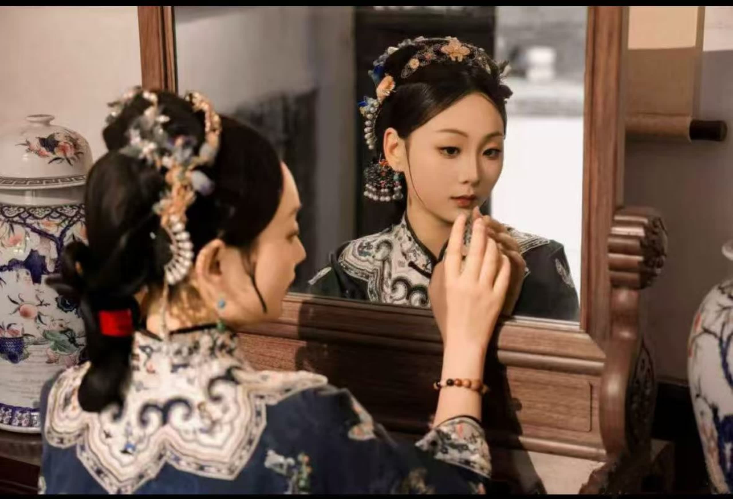 * 전문 메이크업 팀은 '고전미'가 당신의 독특한 분위기에 어떻게 어울리는지 더 잘 알고 있습니다. 독립된 메이크업 공간에서 스타일리스트는 먼저 당신의 얼굴형, 피부색, 스타일 선호도를 세심하게 소통한 후 촬영 주제에 맞춰 메이크업을 디자인합니다. 만약 당신이 맑고 우아한 스타일을 선호한다면 가늘고 긴 버들잎 눈썹을 그리고 옅은 붉은 입술색을 칠할 것이고, 화려한 스타일을 원한다면 붉은 연지를 펴 바르고 구슬 옥 장식으로 장식할 것입니다. 그들은 '복원하되 복제하지 않는' 비결을 잘 알고 있으며, 고대 메이크업의 정수를 복제하는 동시에 항상 당신의 개성을 유지하여 '머리에는 비스듬히 얹은 쪽, 귀에는 밝은 달 구슬'의 고전적인 분위기가 당신의 분위기에 진정으로 스며들게 합니다.