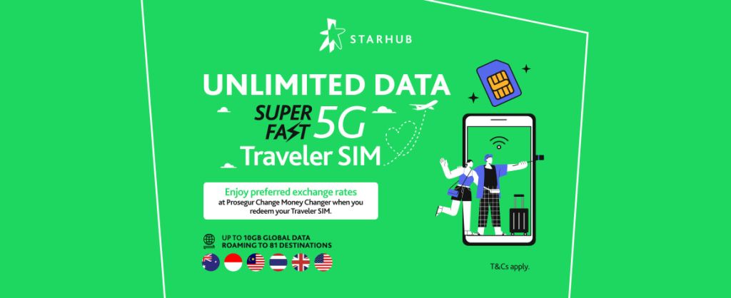 * 싱가포르 최고의 모바일 경험을 선사하는 1위 수상 통신사에서 무제한* 5G 데이터를 즐기세요. * 81개 글로벌 여행지에서 데이터 로밍을 즐기세요 * 창이 공항 제1터미널, 제2터미널, 제4터미널에서 편리하게 트래블러 SIM 카드를 수령하세요. * 핫스팟 공유 가능 * 14일 또는 28일 여행자 SIM을 선택하세요 * EZ-Link 교통카드를 함께 구매할 수 있습니다.