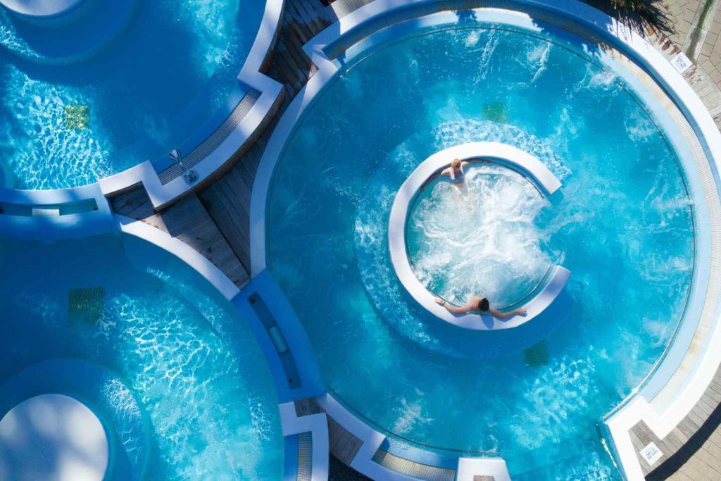 • 다양한 워터 제트가 분사되는 바위 웅덩이와 진정 효과가 있는 유황 웅덩이에 몸을 담그세요.