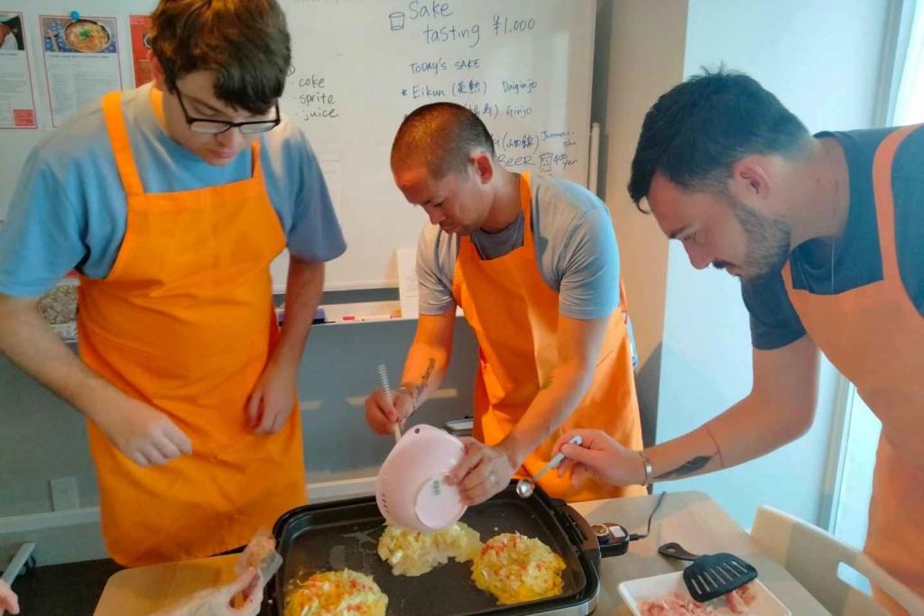 오사카 쿠킹 베이스에 참여하여 일본 문화와 요리에 빠져보세요! 2시간 30분 동안 현지 시장을 탐험하고 카츠 카레와 도시락 같은 전통 요리를 만드는 법을 배워보세요. 단순한 쿠킹 클래스가 아니라 일본의 환대와 요리 전통의 핵심을 경험할 수 있는 문화 교류의 장이 될 것입니다. 우리의 모험은 역사적인 오사카 텐만구 신사에서 만나 여행을 시작하게 됩니다. 거기서부터 현지 상점을 탐험하며 독특한 일본 식재료와 그 문화적 의미를 소개합니다. 통역 서비스가 제공되므로 각 품목의 본질을 충분히 이해할 수 있습니다. 다음으로 진짜 재미가 시작되는 주방으로 이동합니다. 단계별로 오코노미야키와 야키소바 또는 타코야키를 만드는 방법을 배우게 되며, 각 단계마다 요리 뒤에 숨겨진 기술과 전통을 이해할 수 있도록 세심하게 설명해 드립니다. 이 체험은 어린 아이부터 노인까지 모든 연령대가 흥미롭고 교육적으로 참여할 수 있도록 설계되었습니다. 요리 과정 내내 생생한 대화를 나눌 수 있습니다. 일본과 일본 문화에 대해 궁금한 점이나 호기심을 자극하는 모든 것을 자유롭게 질문해 주세요. 일본 생활에 대한 이해를 넓힐 수 있는 답변과 통찰력을 제공하는 것을 목표로 합니다. 저희의 주요 목표는 집에서 쉽게 재현할 수 있는 요리를 만드는 방법을 알려드리는 것입니다. 수업이 끝나면 여러분은 일본의 맛을 자신의 부엌에 가져올 수 있는 기술과 자신감을 갖게 될 것입니다. 오사카의 중심부에서 요리와 문화, 교류를 결합한 잊을 수 없는 경험을 해보세요. 최소 24시간 전에 예약해 주시기 바랍니다.