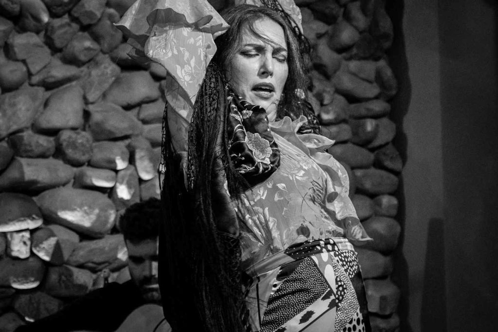 말라가의 엘 갈로 론코 플라멩코에서 댄서, 기타리스트, 보컬리스트의 친밀한 플라멩코 공연을 통해 독특한 분위기를 경험하세요
