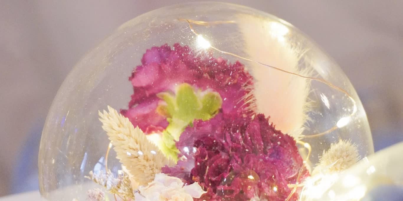 두 번째 세션: 2시간 (첫 수업 최소 5일 전) 자연 건조 꽃에 대해 알아보세요 프리저브드플라워와 드라이플라워 유리커버로 제작되었습니다.