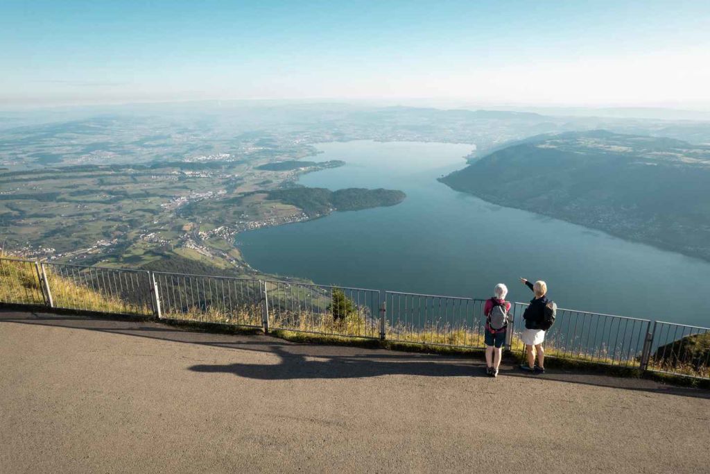 보트를 타고 비츠나우에 도착하면 연결 열차로 환승하여 장엄한 리기 산 정상으로 이동하세요. 눈앞에 펼쳐지는 경이로운 360도 파노라마에 푹 빠져보세요. 여유롭게 산책(약 35분 소요)을 하거나 리기 칼트바트까지 매시간 운행하는 기차를 이용해 보세요.
