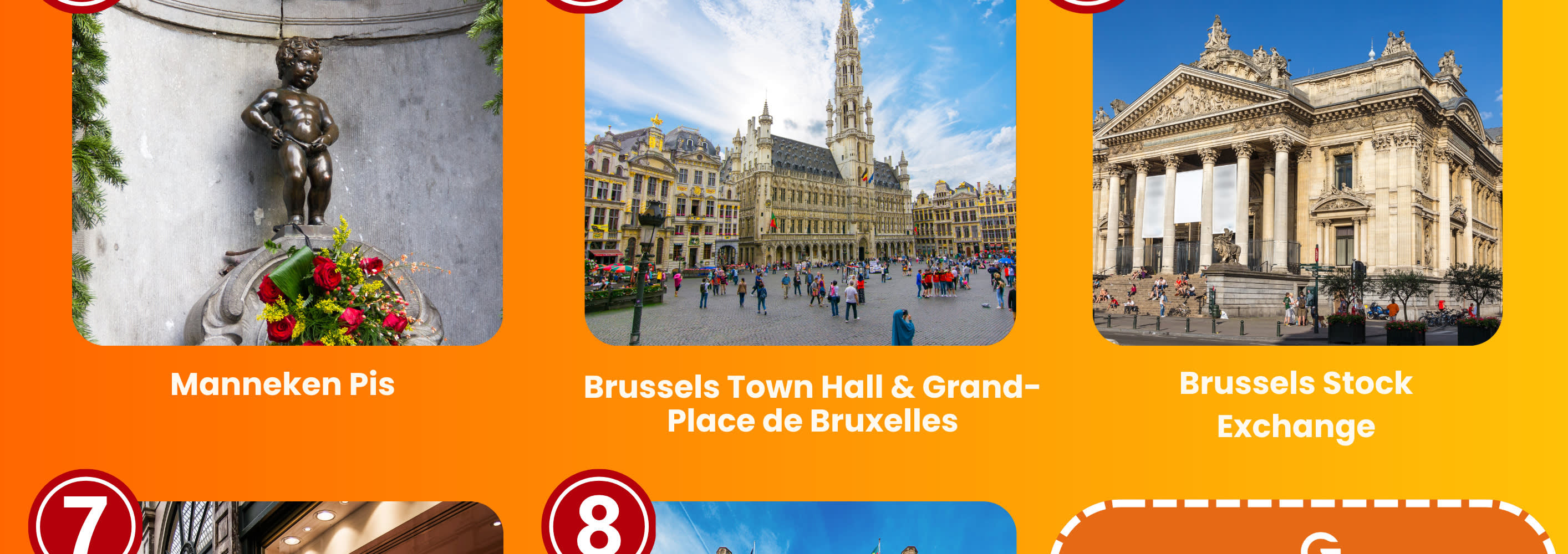 브뤼셀의 주요 명소를 만나보세요! 가이드와 함께 우아한 그랑 사블롱 광장(Place du Grand Sablon)에서 몽 아트(Mont Arts)의 숨 막힐 듯 아름다운 전망대로 이동합니다. 전설적인 오줌싸개 동상 마네킨 피스(Manneken Pis)를 보고, 유네스코 세계문화유산인 그랑플라스(Grand-Place)의 웅장함에 압도당하고, 고급스러운 생 위베르 왕립 갤러리(Royal Gallery of Saint Hubert)를 거닐어보세요. 투어는 아름다운 성 미셸과 성녀 구둘라 대성당(St. Michael & St. Gudula Cathedral)에서 마무리됩니다. 벨기에 수도를 탐험하는 동안 무료 eSIM으로 편리하게 통신하세요.