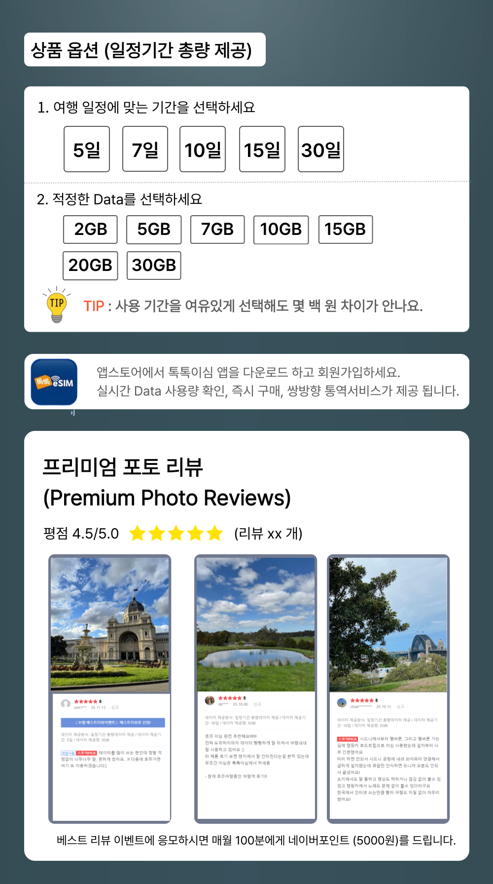 [톡톡이심] 호주 이심 총량 데이터 제공, 오페라 하우스, 하버 브리지, 그레이트 오션 로드 eSIM
