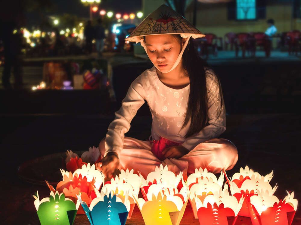 어둠이 깔리면서 하나둘 켜기는 형형색색의 전등이 호이안의 트레이드마크로 색다른 아름다움을 즐길 수 있습니다. '호이안 야경'을 즐기며 강물에 띄우는 소원초는 호이안 여행의 운치를 더합니다. 더불어 호이안 야시장에 나온 물건들과 간식거리는 또 하나의 여행의 즐거움을 선사합니다.