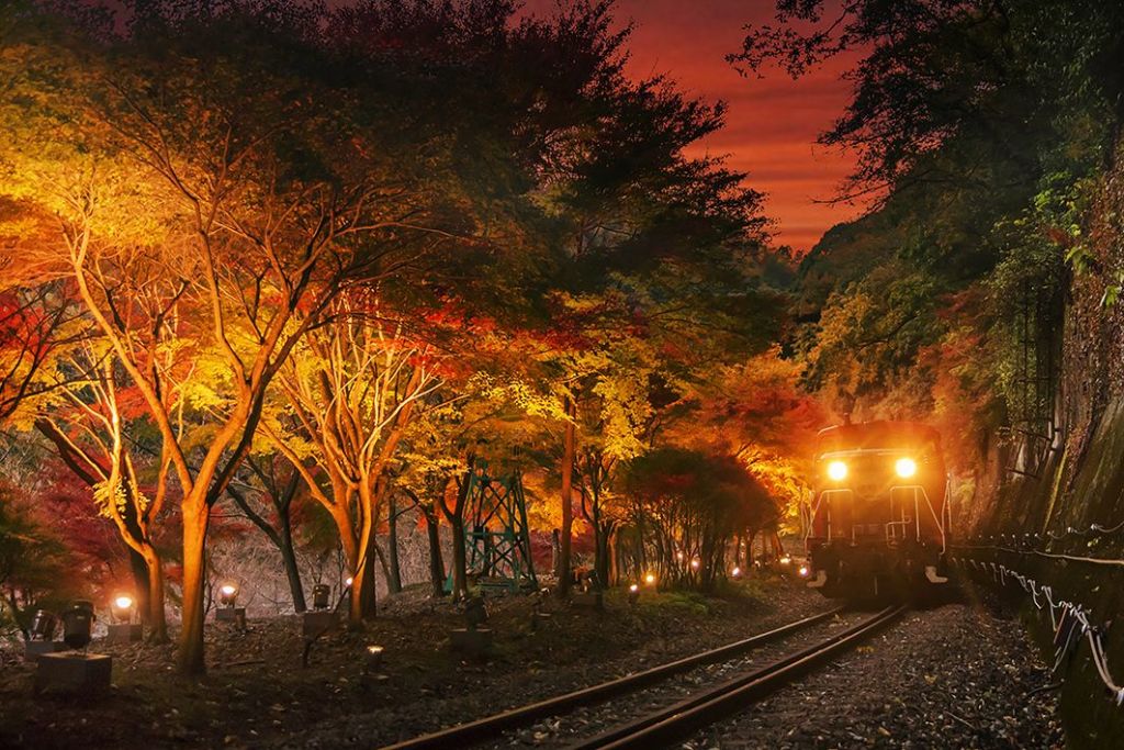 ★단풍 라이트업과 장식이 더해진 "빛의 환상 열차" 사가노 로맨틱 트레인을 탑승하실 수 있습니다.