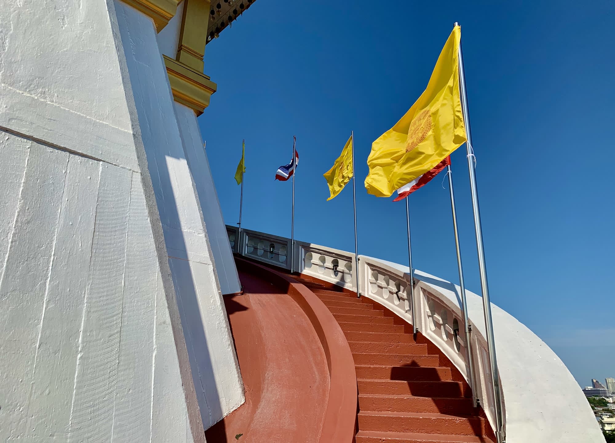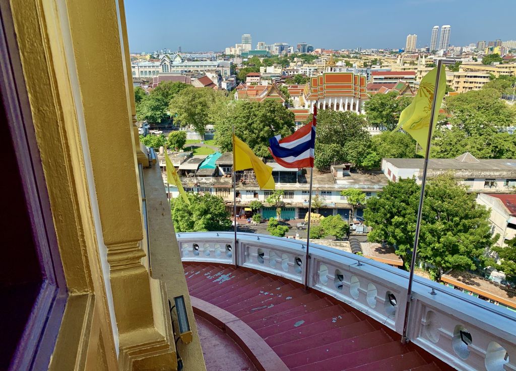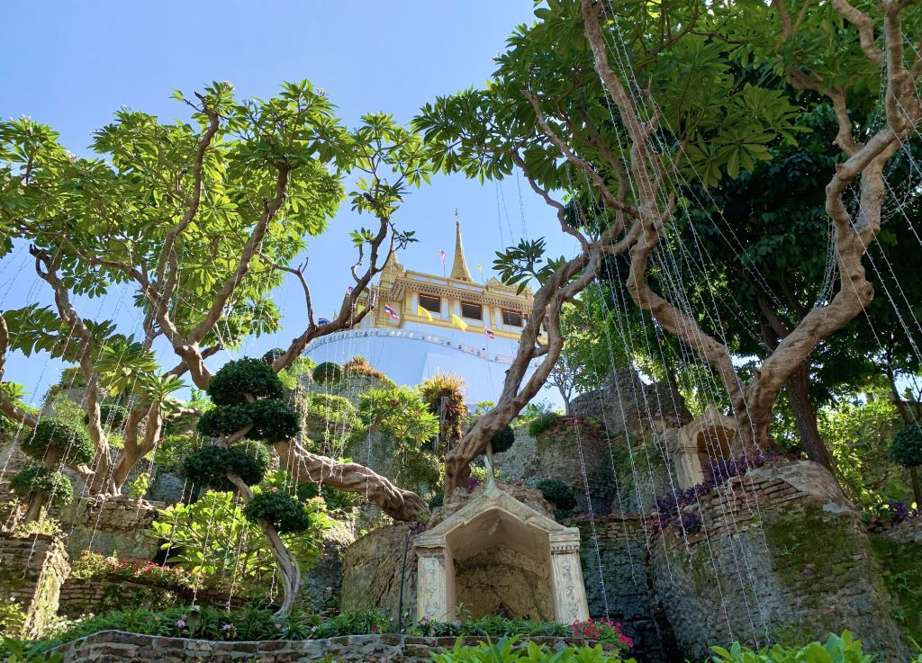 황금산(Golden Mount)이라 불리는 신비로운 분위기의 사원을 오르며, 시원한 도심 전망을 감상해요.