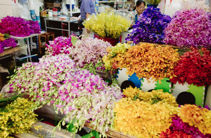 방콕 최대 규모의 꽃 도매시장인 빡끌렁 꽃시장에서 다양한 꽃들을 구경해요.