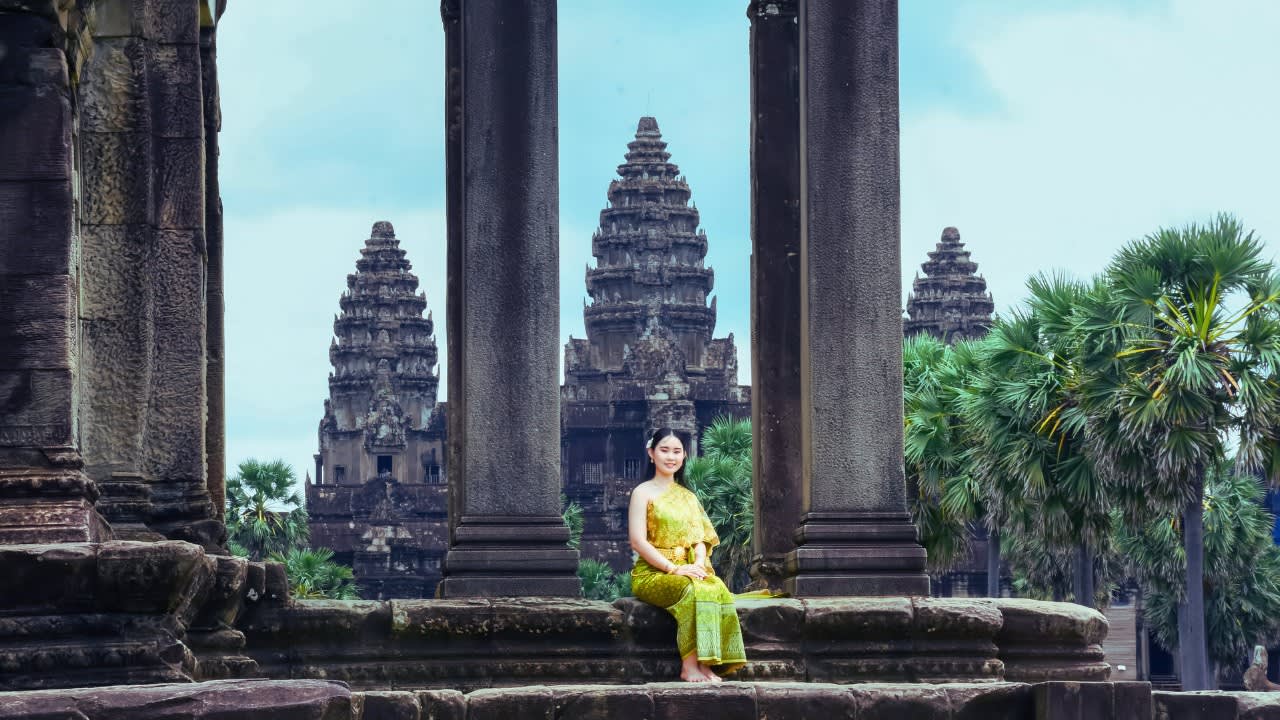 * 전통 크메르 의상과 복장을 입고 시엠립의 유명한 앙코르와트 사원을 탐험해보세요.