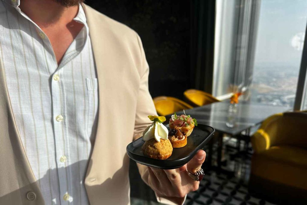 버즈 칼리파 122층에서 시작하여 두바이의 웅장한 전망을 감상하며 진정한 두바이 스타일의 카나페 3종과 버진 칵테일을 즐겨보세요.