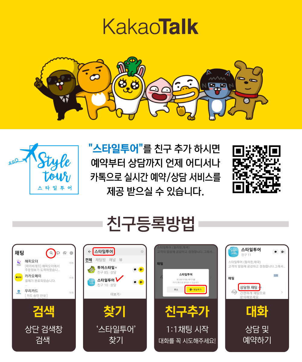 예약후 반드시 카카오톡채널 '스타일투어'로 대화를 신청해주세요. (꼭 대화를 걸어주셔야 합니다.)