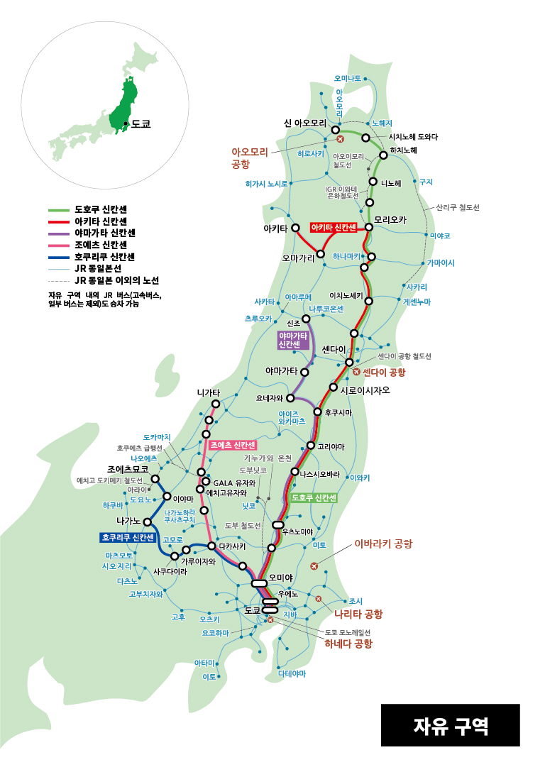 9. JR동일본 패스로는 도카이도 신칸센을 이용할 수 없습니다.