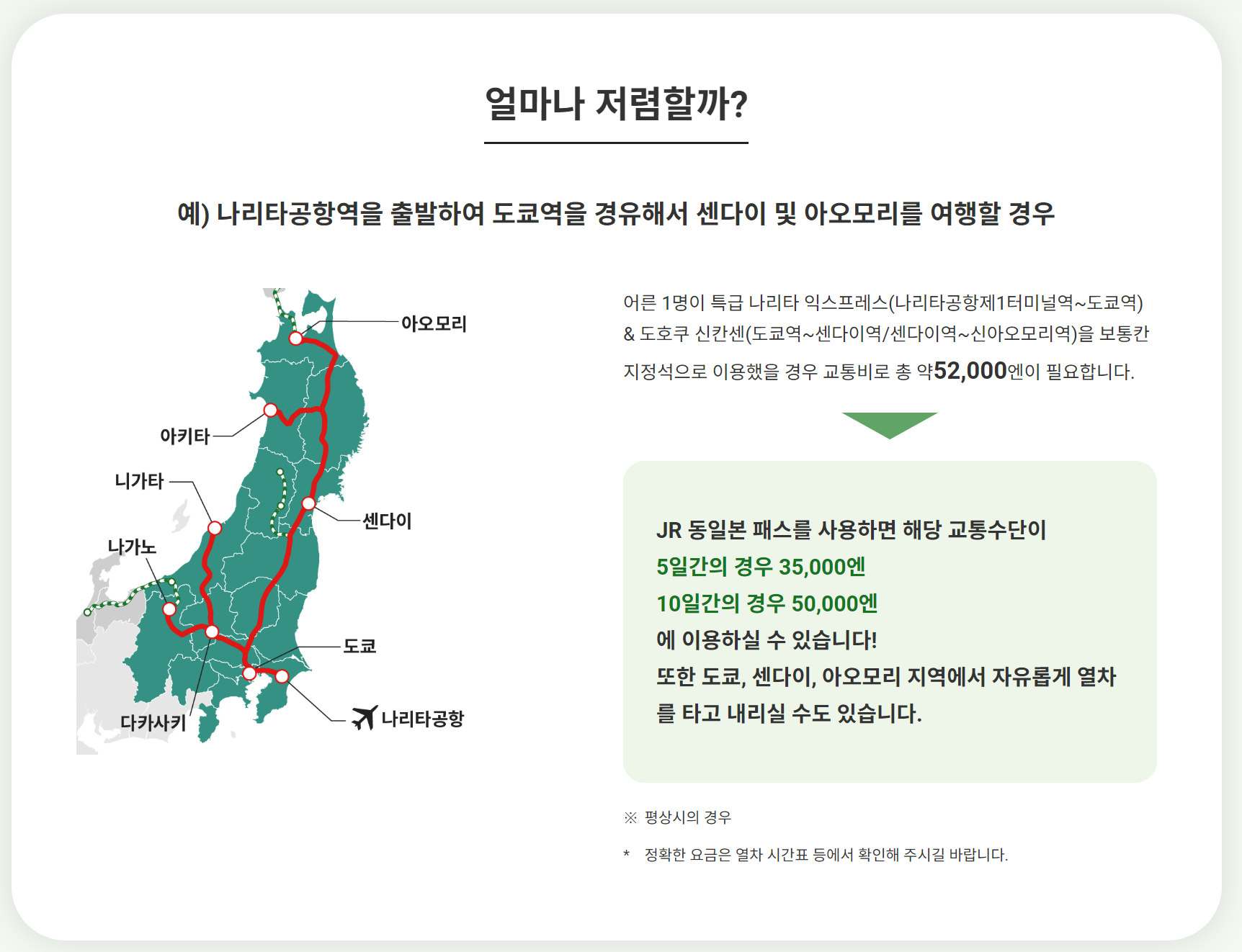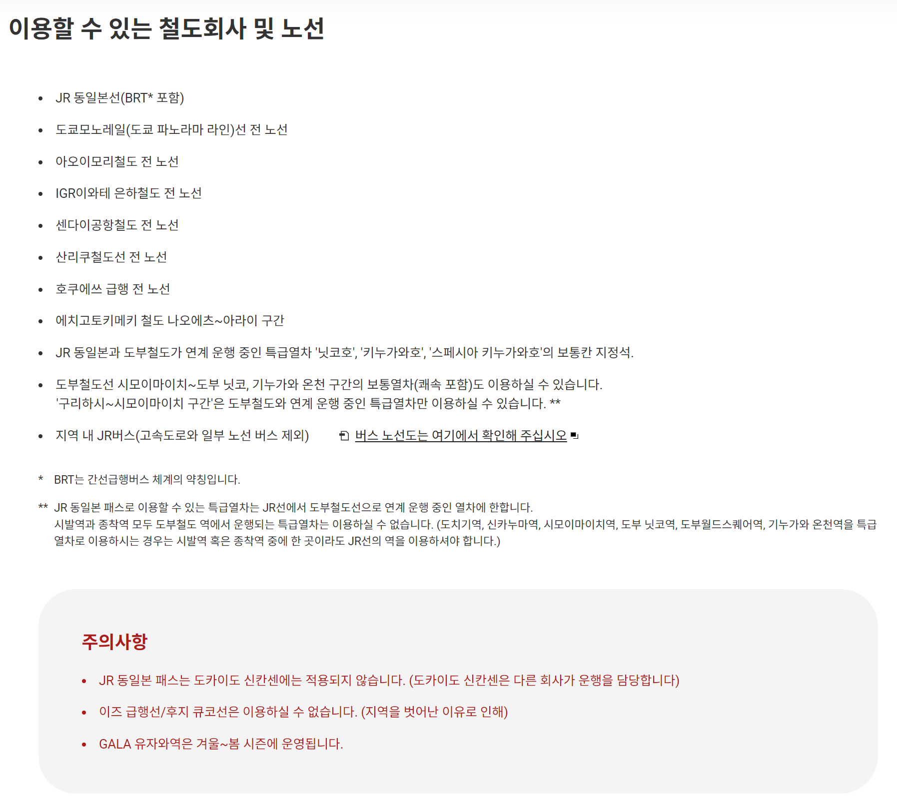 10. JR동일본 패스 이용 가능 구역 외 또는 대상 외 시설 이용 시 추가 요금 발생합니다.