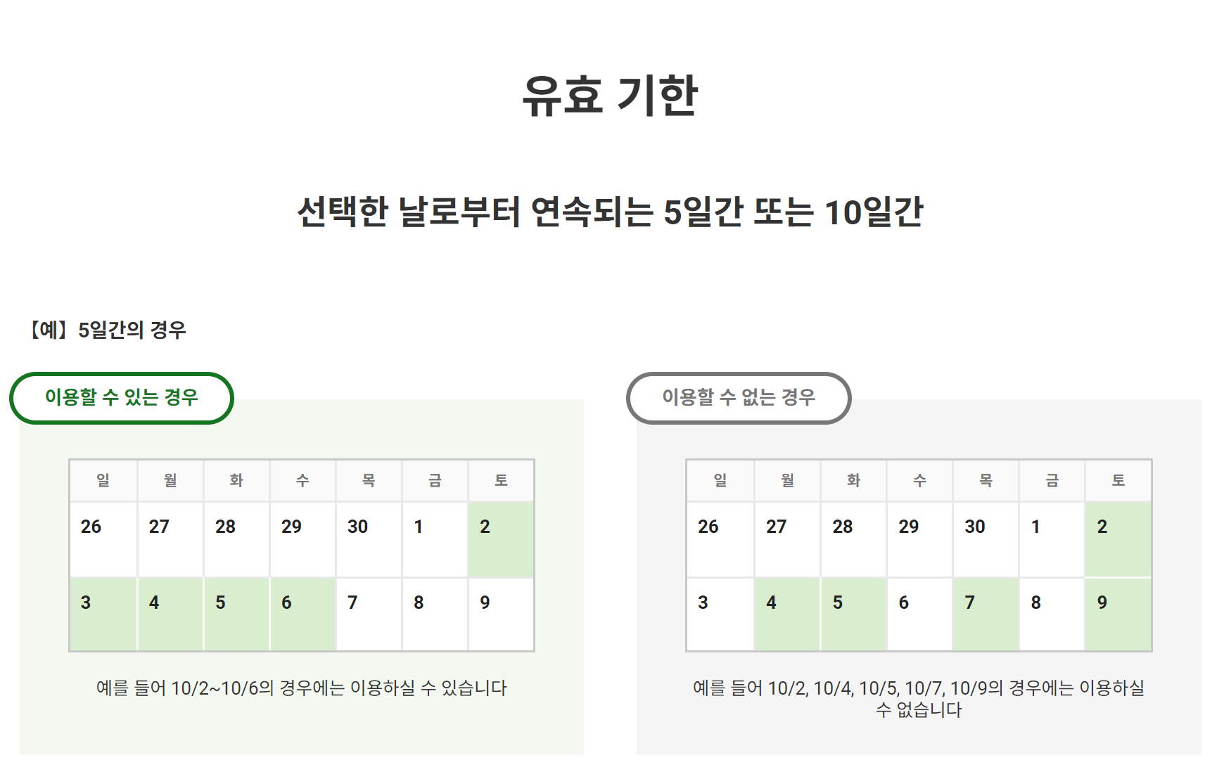 4. 이용 개시일로부터 연속일로만 사용이 가능합니다.