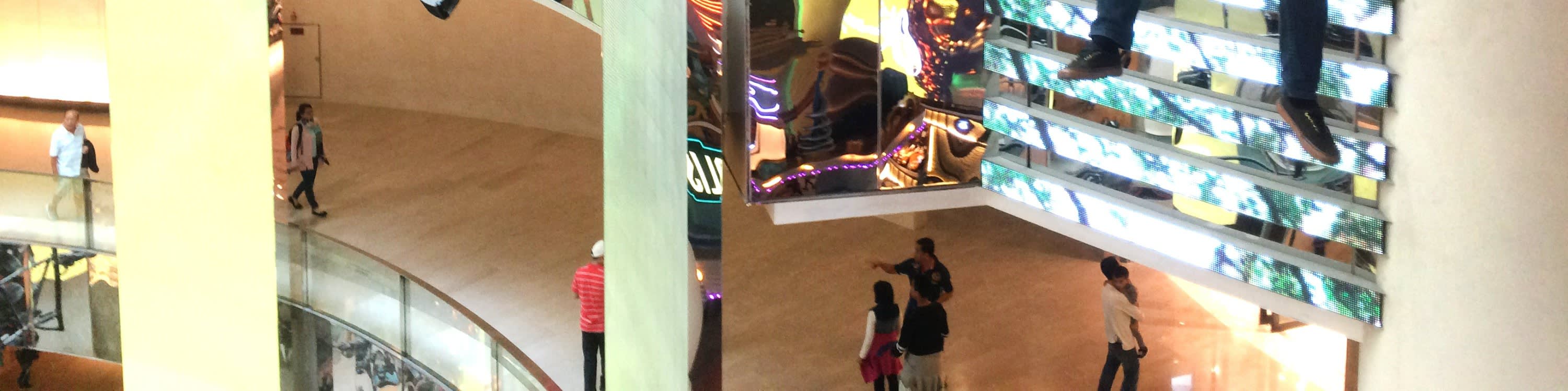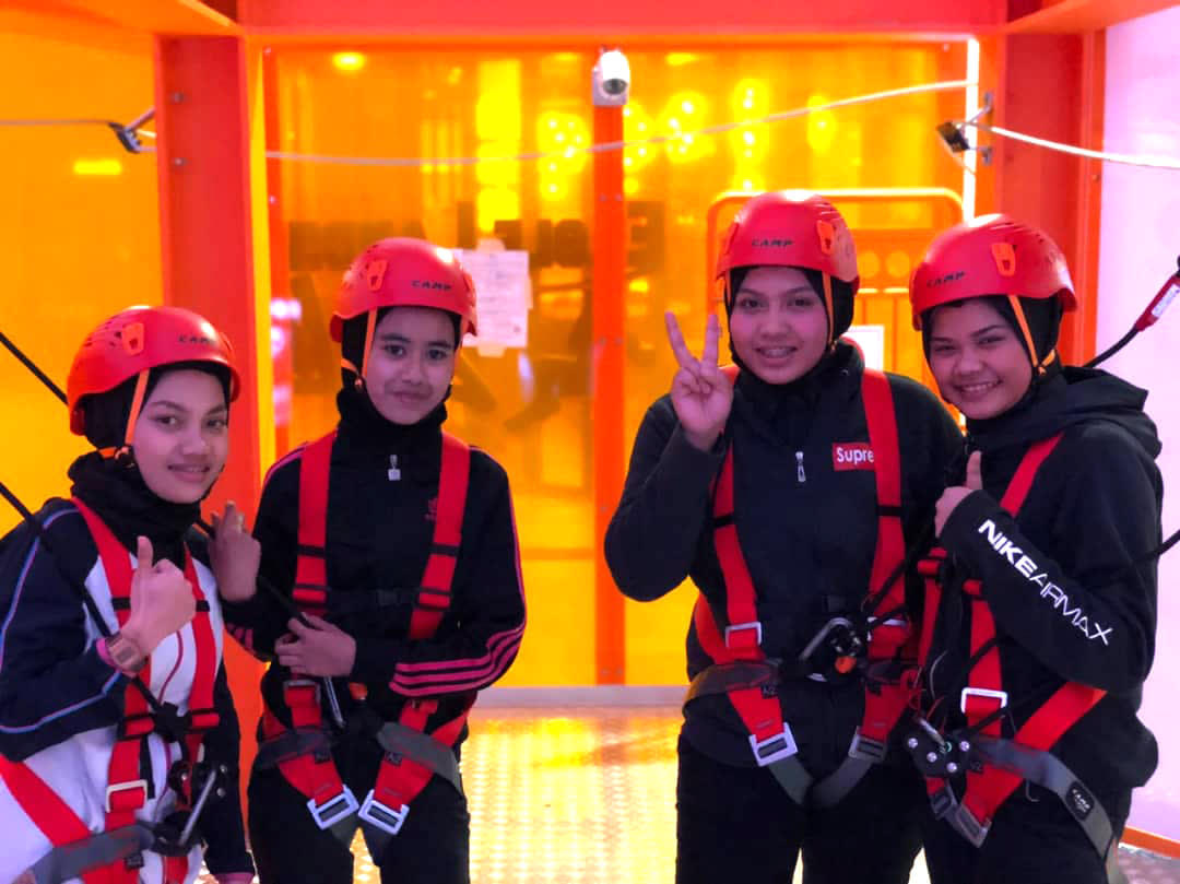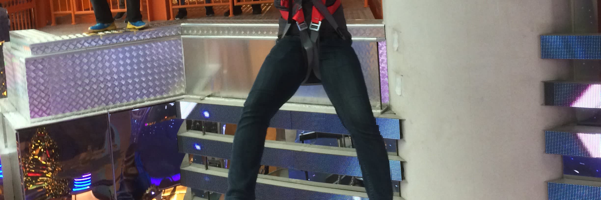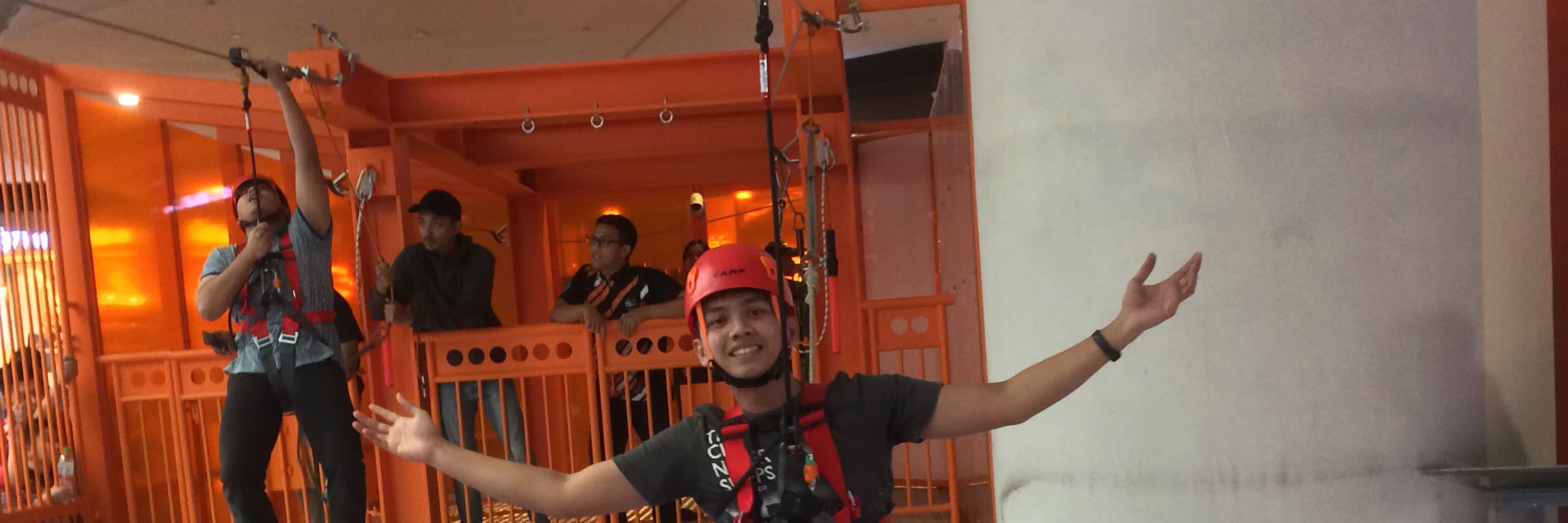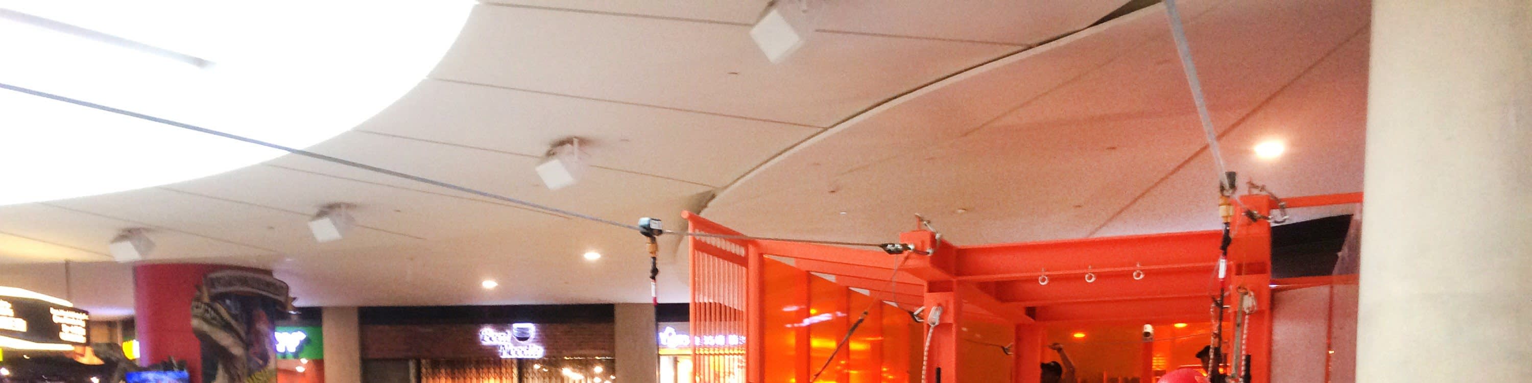 * 쇼핑몰의 다른 구역 사이의 틈새를 가로지르는 이 신나는 짚라인 모험에 도전해 보세요.