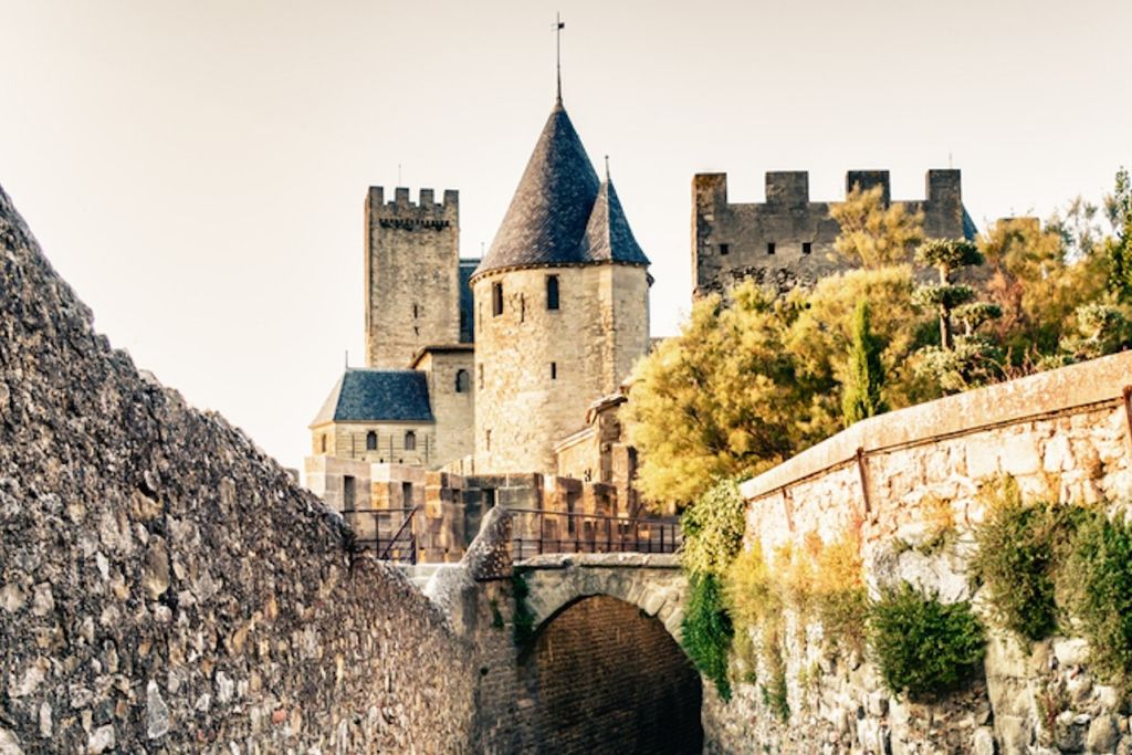 카르카손에서 가장 눈에 띄는 특징은 중세 시대의 요새 벽과 탑입니다. 이 도시는 구시가지를 둘러싼 이중 성벽으로 유명합니다. 이 성벽은 19세기에 건축가 외젠 비올레르뒤크에 의해 복원되어 도시의 독특한 외관을 완성했습니다.