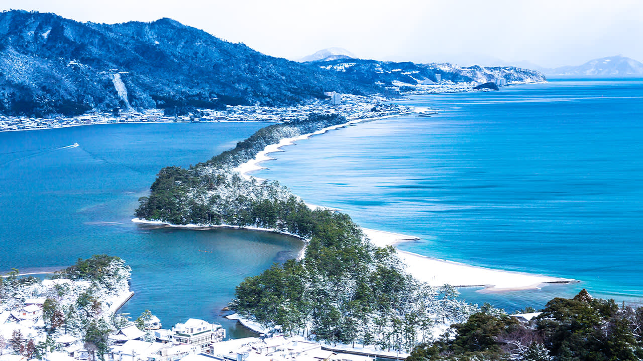 * 아마노하시다테 전망대에 올라 일본 3대 절경 중 하나인 백사장과 푸른 소나무의 절경을 감상해 보세요.