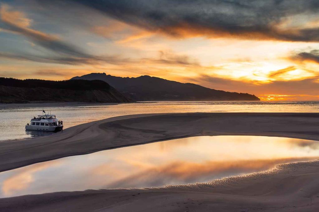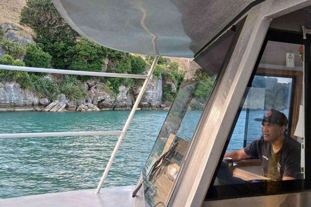 현지 가이드와 함께하는 선셋 크루즈를 타고 웨이ンガ로아(래글런) 항구를 둘러보며 웨스트코스트의 아름다운 풍경을 감상하세요.