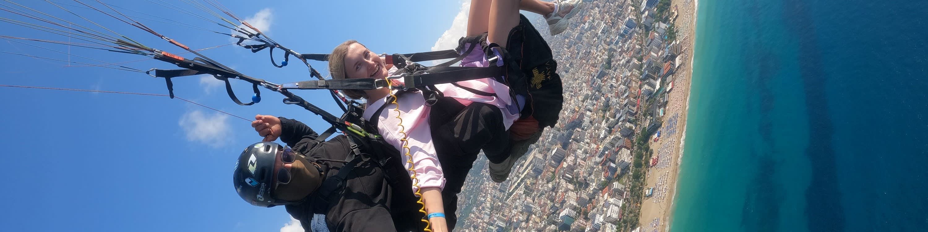 알라냐의 아름다운 지중해 해안선 위로 날아오르는 스릴을 Tandem Paragliding 모험으로 경험하세요! 이 잊을 수 없는 경험은 숨 막힐 듯한 전망, 아드레날린, 전문 조종사의 전문성을 결합하여 안전하고 신나는 비행을 보장합니다.