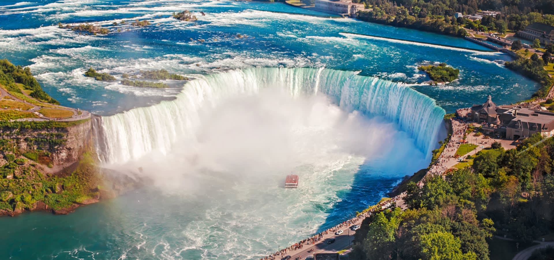 에어컨이 완비된 편안한 미니 코치를 타고 숨 막힐 듯 아름다운 나이아가라 폭포로 떠나보세요. 풍부한 역사와 독특한 지리에 대한 흥미로운 해설을 들으며 특별한 시간을 보내실 수 있습니다. 잊을 수 없는 혼블로어 유람선을 타고 폭포의 거대한 힘을 가까이에서 느껴보세요. 웅장한 호스슈 폭포와 엄청난 양의 물이 쏟아지는 장관을 감상하고, 평화로운 더퍼린 아일랜드를 따라 여유로운 시간을 즐겨보세요. 저녁 식사를 하거나 클리프턴 힐의 활기 넘치는 명소를 자유롭게 둘러보실 수도 있습니다. 밤이 되면 형형색색으로 빛나는 폭포를 감상하고, 하늘을 밝히는 화려한 불꽃놀이를 관람하며 잊지 못할 추억을 만들어보세요.