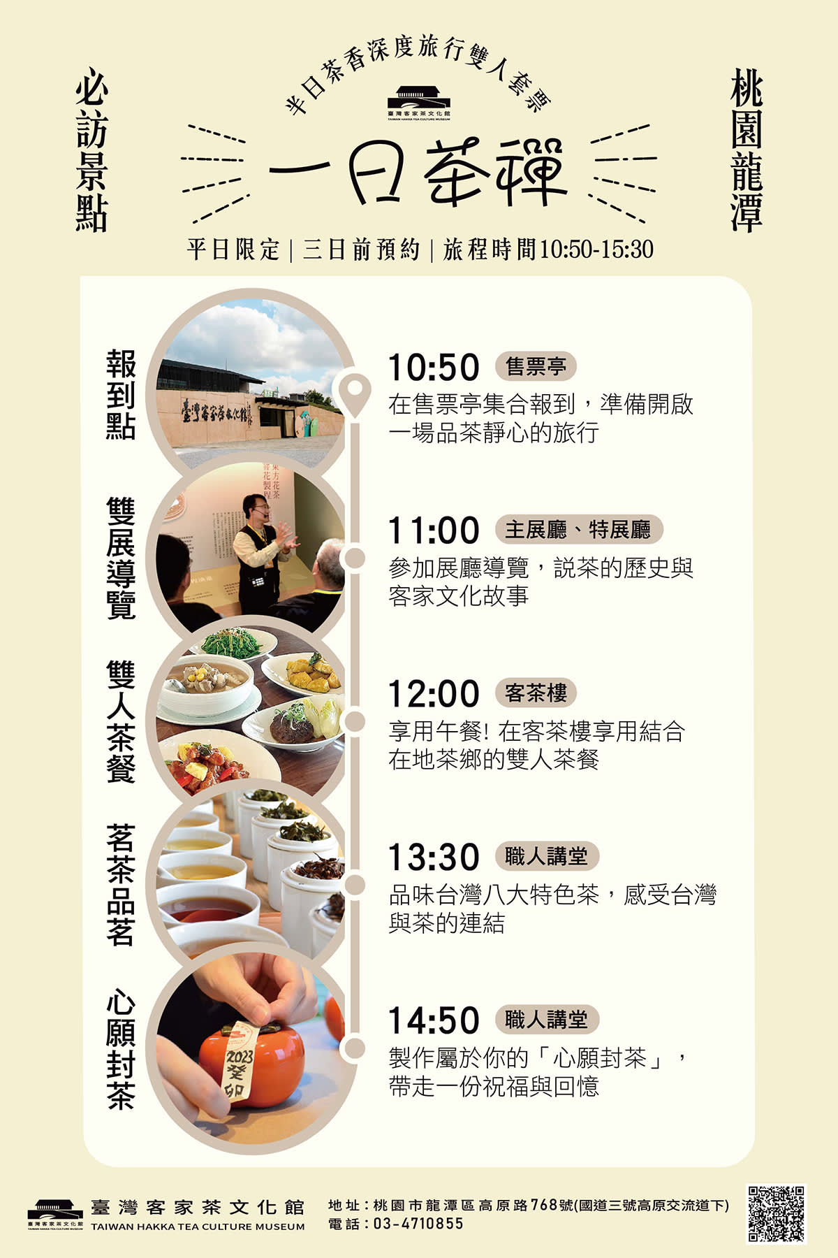 ▶2인 레이차 체험 - 이용요건 * 본 상품은 이용 가능 연령이 제한되어 있지 않습니다. - 추가정보 * 병류, 폭죽류, 레이저 등과 같은 위험 물품 및 타인에 방해 또는 불편을 초래할 수 있는 기타 물품의 반입은 금지됩니다. * 흡연 및 음주는 불가합니다. 적발시 즉시 퇴장 조치됩니다. * 본 티켓에는 대만 하카 차 문화관의 전시관 입장권이 포함되어 있지 않으므로, 필요하신 경우 미리 구매하시거나 현장에서 구매하시기 바랍니다. * 온라인 예매 시 일부 현장 할인 혜택이 적용되지 않는 점 양해 부탁드립니다. - 운영시간 * 화요일-일요일: 09:00-18:00 * 입장 마감: 17:00 월요일 휴무