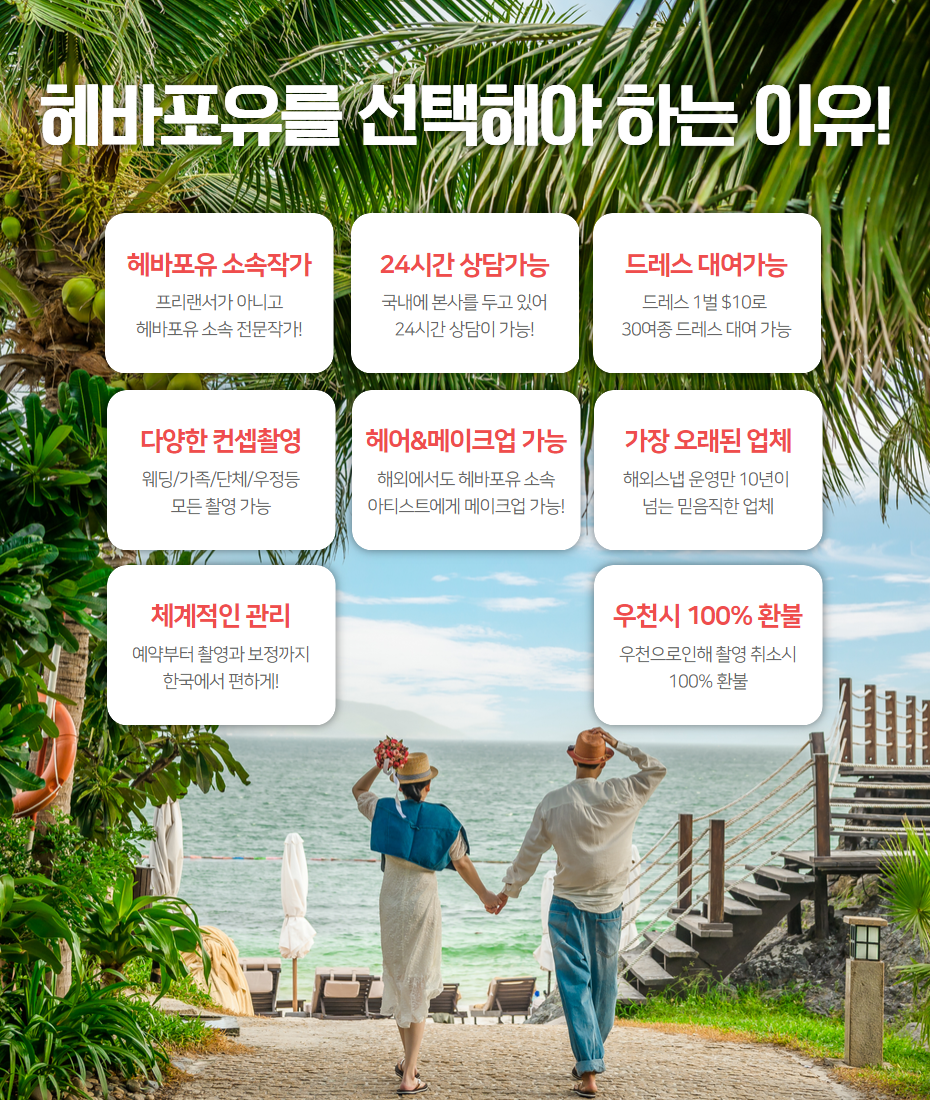 신혼여행, 가족여행, 웨딩스냅, 칠순여행등 다양한 촬영 가능
