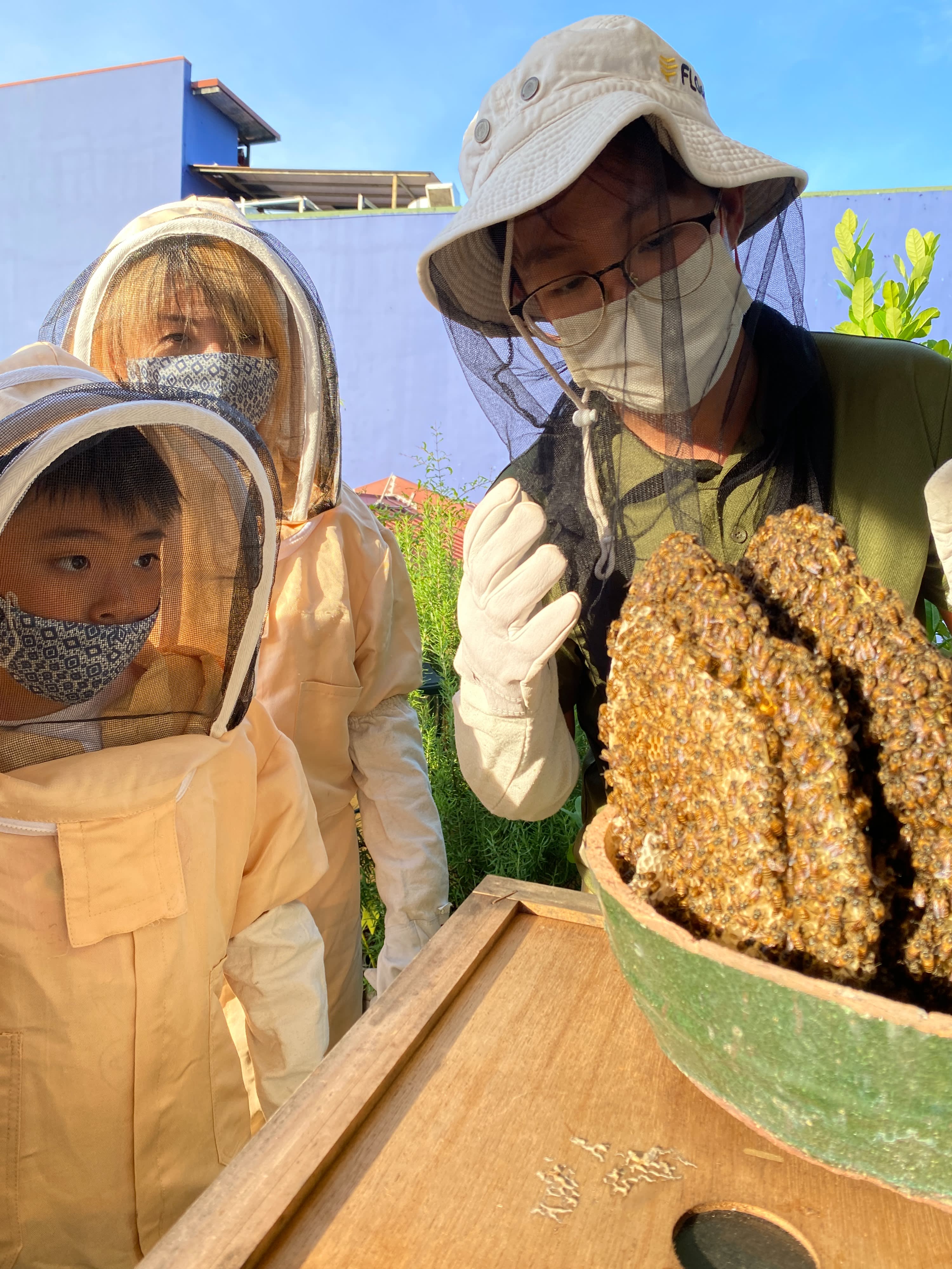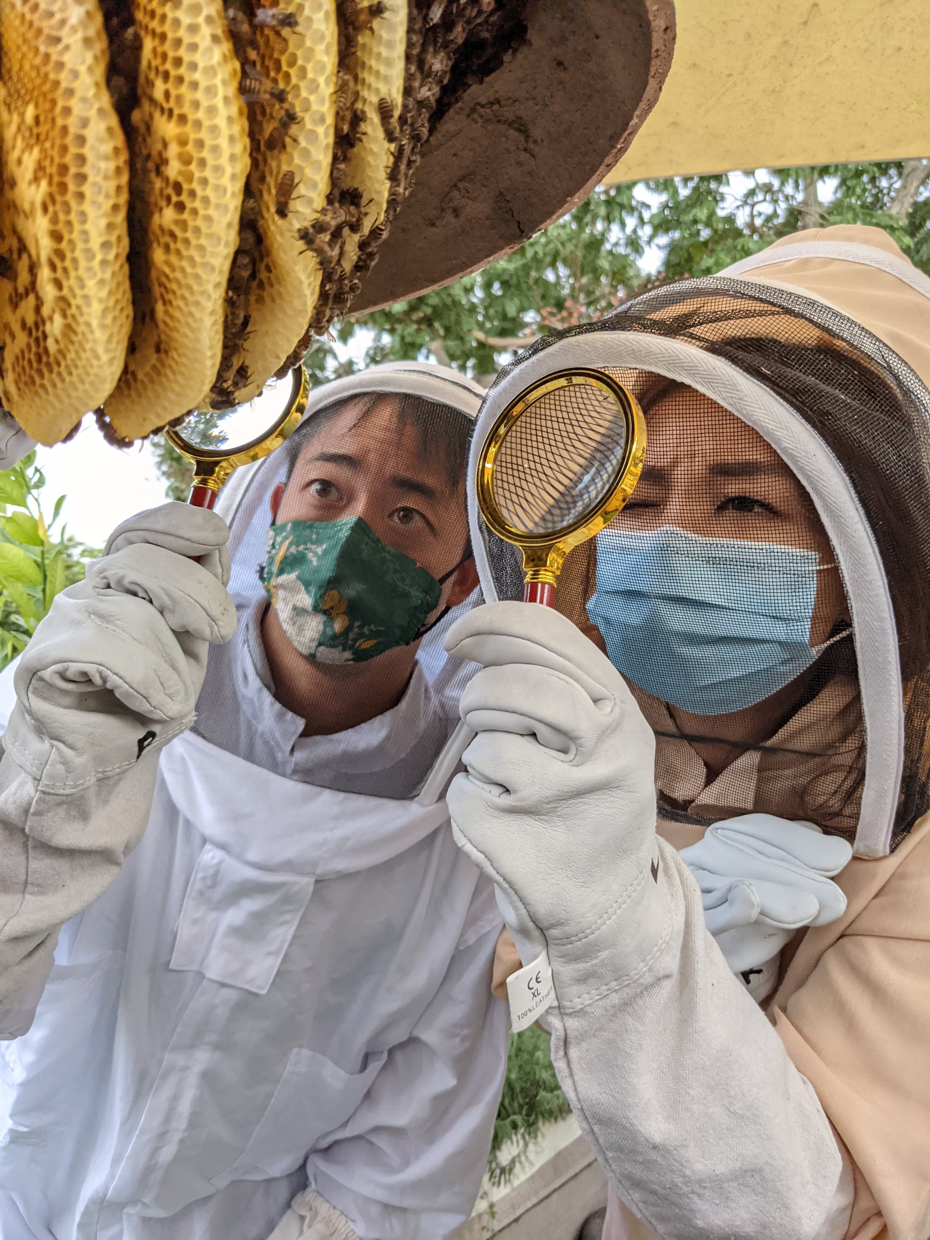벌 보호복을 입고 토종 꿀벌의 둥지를 가까이에서 관찰해보세요. 양봉장의 모든 벌집은 구조된 벌집입니다(멸종 위기에서 구출)! 꿀벌들이 열심히 꽃가루와 꿀을 모으는 모습을 지켜보세요.