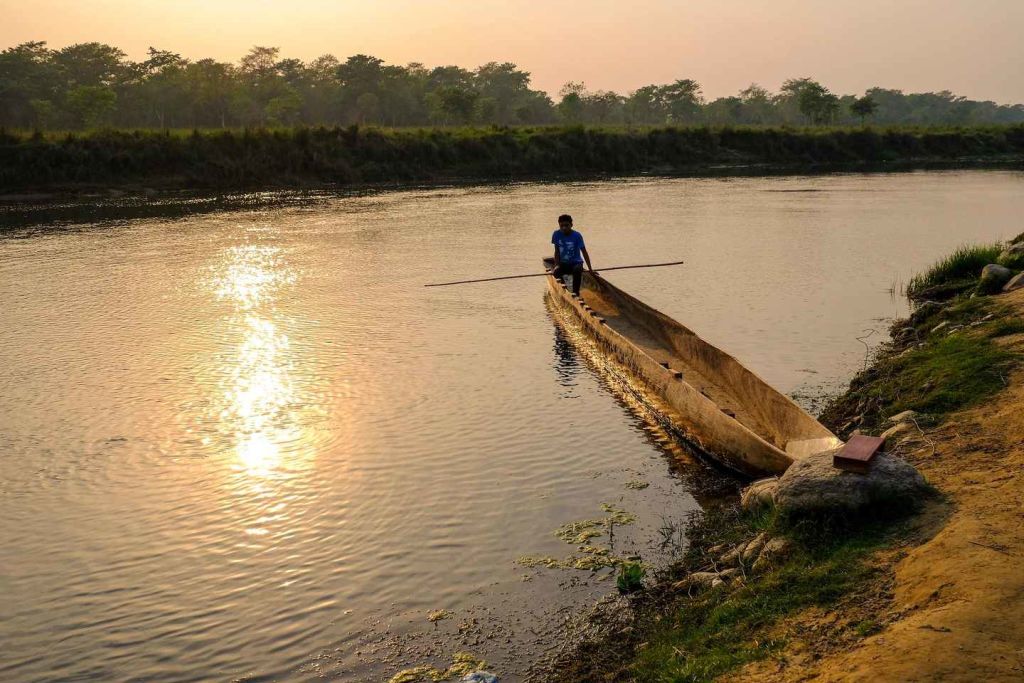 랩티 강에서 카누를 타고 야생동물을 발견하기 위해 눈을 부릅뜨고 지켜보세요.