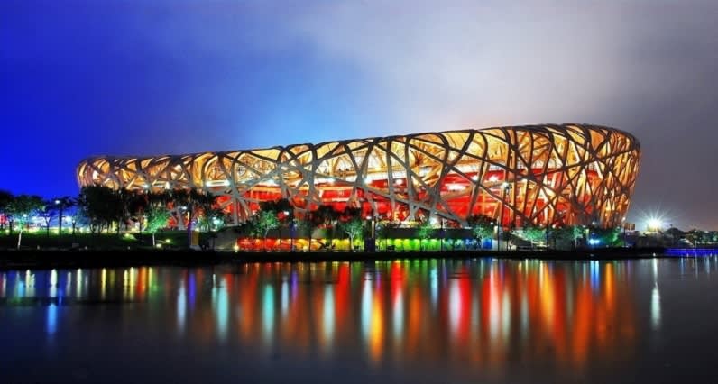 국가체육장(國家體育場), 또 다른 이름은 “냐오차오(鳥巢)”이며, 2008년 베이징 올림픽 주 경기장이자 2022년 베이징 동계 올림픽 및 동계 패럴림픽 개·폐막식 경기장이며, 세계 최초의 “더블 올림픽 개·폐막식 경기장”이기도 합니다. 국가 이미지를 대표하는 상징적인 건축물로서 냐오차오는 순수한 스포츠 또는 건축 개념을 초월하여 심오한 사회적 의미를 담고 있으며, 이미 국제 교류의 플랫폼이자 중국 이미지를 보여주는 중요한 창구가 되었습니다. 샹윈진팅(祥雲金廳)은 냐오차오 2층에 위치하며, 금색을 주제로 붉은색 카펫과 샹윈(祥雲) 문양으로 장식되어 있습니다. 벽과 천장의 그림은 평화의 비둘기이며, 총 2,008마리의 평화의 비둘기가 있습니다. 벽면 장식은 베이징 칠보재(北京漆寶齋)에서 제작한 칠기 장식품이며, 28개의 56면 붉은색 조칠 벽화가 한 폭의 《성세화해(盛世和諧)》 그림을 이루고 있습니다. 정면 벽화는 금칠 벽화 공예로 제작한 《희작등지(喜鵲登枝)》 그림입니다. 류수이인팅(流水銀廳) 내에는 수작업으로 그린 중국 전통 스포츠 종목인 격구(馬球), 축국(蹴鞠), 역도(舉重), 대국(對弈) 등 고대 운동이 중국 스포츠 발전의 역사적인 모습을 보여줍니다. 귀빈실에서 나오면 베이징 동계 올림픽 사진 및 귀빈 물품 전시가 있으며, 베이징 동계 올림픽, 동계 패럴림픽 개·폐막식 시리즈 사진, 기념품 및 스태프 유니폼 등을 전시하여 빙설 축제의 무대 안팎을 보여줍니다. 그 안을 거닐면 동계 올림픽의 매력과 풍채를 느끼고 동계 올림픽에 대한 아름다운 기억을 되살릴 수 있습니다. “냐오차오 환락구(鳥巢歡樂購)” 판매대는 전문 디자인팀이 정성껏 만든 독특한 정품 냐오차오 기념품을 판매하며, 기념적인 의미가 담긴 냐오차오 문화 창작 상품은 관광객들이 줄을 서서 고르는 것을 끌어들이고, 너도나도 “냐오차오”를 집으로 가져갑니다. 홀을 지나 엘리베이터를 타고 냐오차오 5층으로 올라갑니다. 가장 먼저 볼 수 있는 것은 올림픽 문화유산 복도입니다. 2008년 올림픽 개막식 도구 및 경기 장비, 부(缶), 고쟁(古箏), 죽간(竹簡) 등 개막식 공연 도구, 투포환, 창, 노 등 경기 장비가 있습니다. 복도에 들어서면 눈을 뗄 수 없을 정도로 2008년 올림픽의 뜨거웠던 여름으로 되돌아간 듯합니다. 냐오차오 정상에 오르면 남쪽으로는 도시 중심축을 멀리 바라볼 수 있고, 북쪽으로는 링롱탑(玲瓏塔), 올림픽 타워를 바라볼 수 있으며, 냐오차오 경기장 내부의 붉은색 경관과 푸른 용 모양의 수계를 굽어볼 수 있으며, 올림픽 공원 중심 구역은 겹겹이 쌓인 듯 다채로운 색깔로 눈에 들어옵니다.