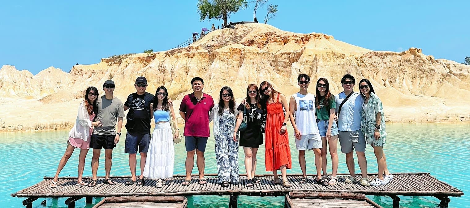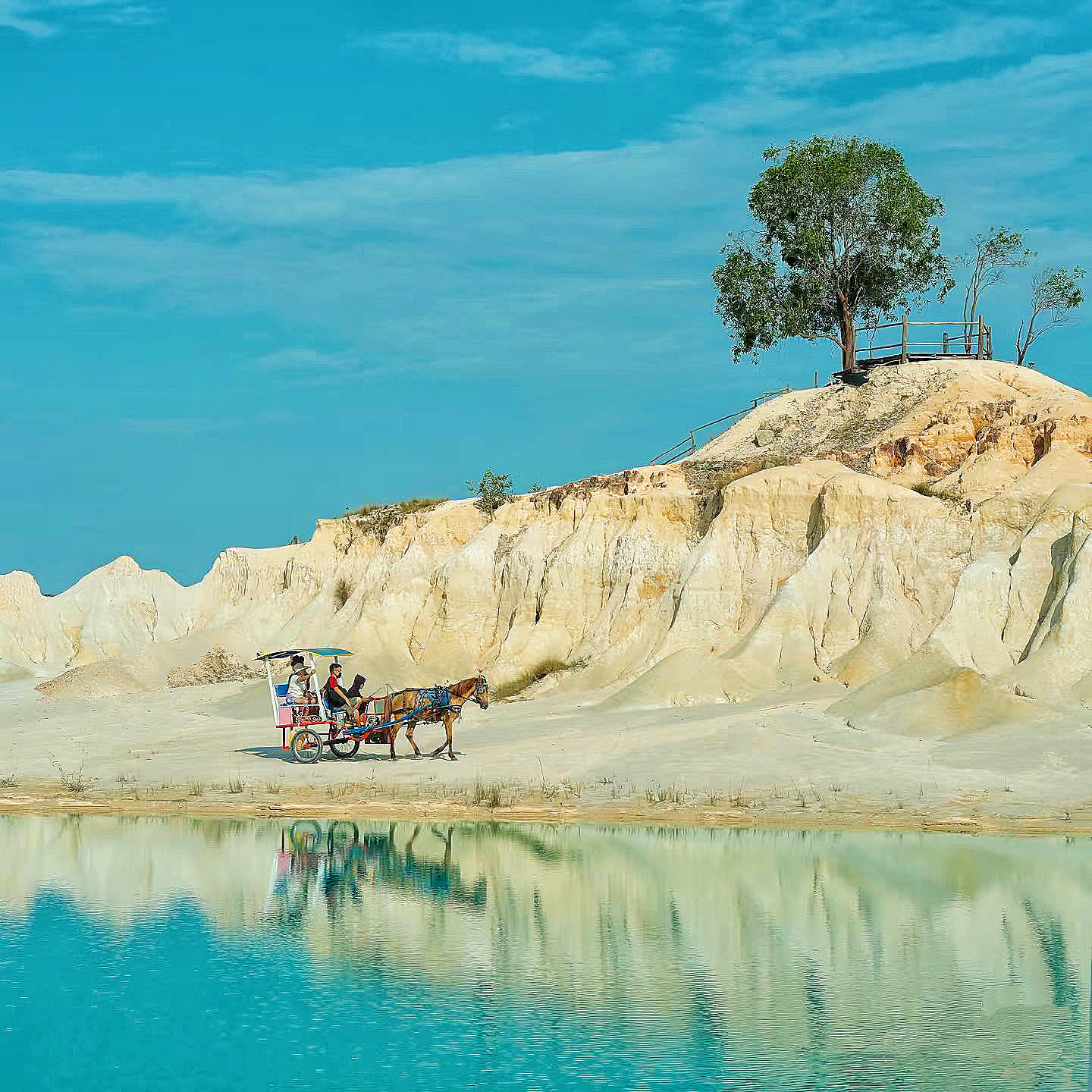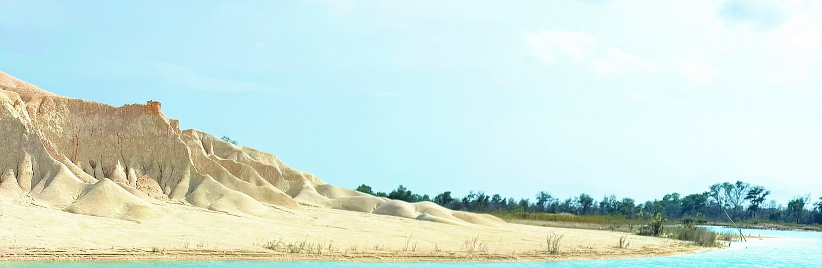 사막처럼 보이는 모래 언덕은 빈탄섬의 아름다운 관광 명소 중 하나입니다. 자연적으로 보이지만, 이 모래 언덕은 모래 수출 금지 이후 광산 발굴로 인해 형성되었습니다. 이 장소 근처에는 맑고 푸른 물을 자랑하는 여러 호수가 있어 사진 촬영에 매우 적합합니다.