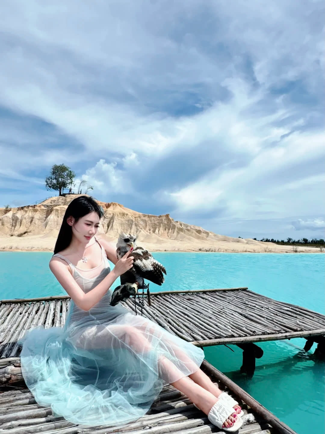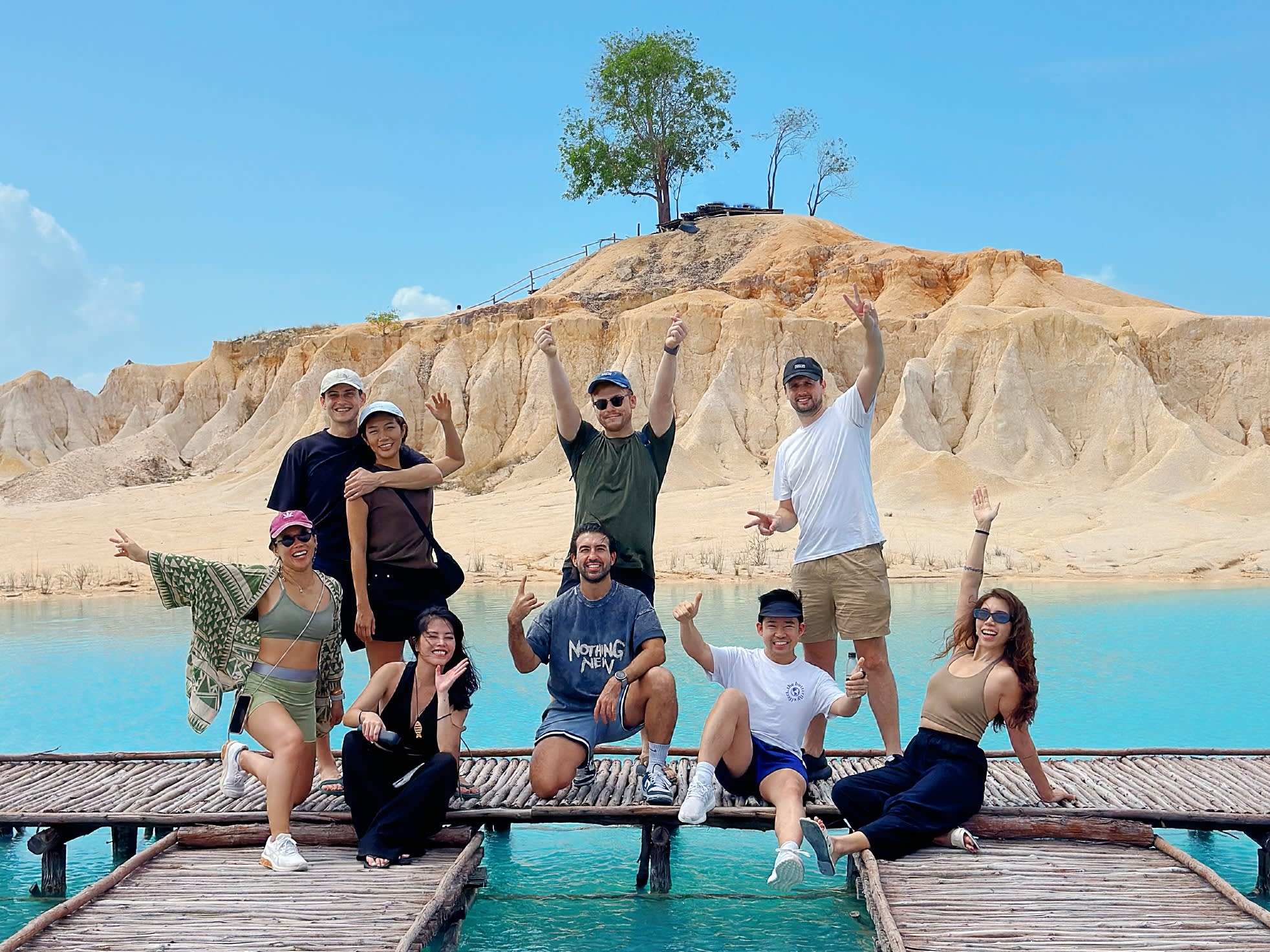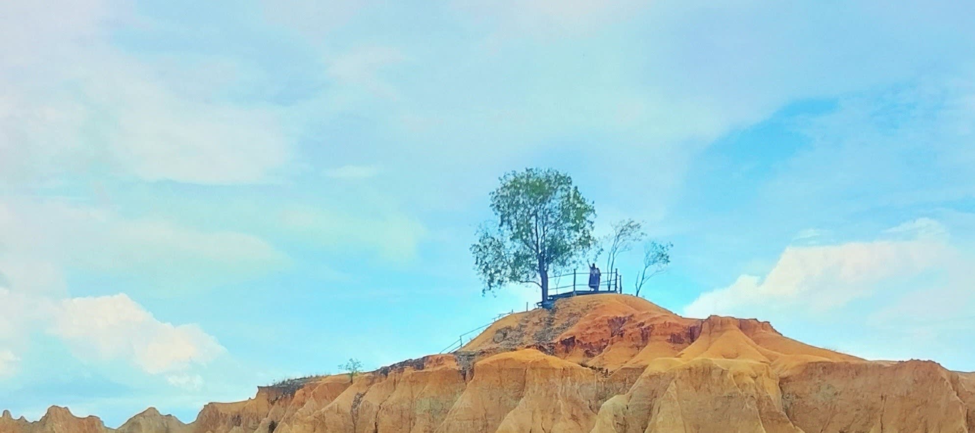 사막처럼 보이는 모래 언덕은 빈탄섬의 아름다운 관광 명소 중 하나입니다. 자연적으로 보이지만, 이 모래 언덕은 모래 수출 금지 이후 광산 발굴로 인해 형성되었습니다. 이 장소 근처에는 맑고 푸른 물을 자랑하는 여러 호수가 있어 사진 촬영에 매우 적합합니다.