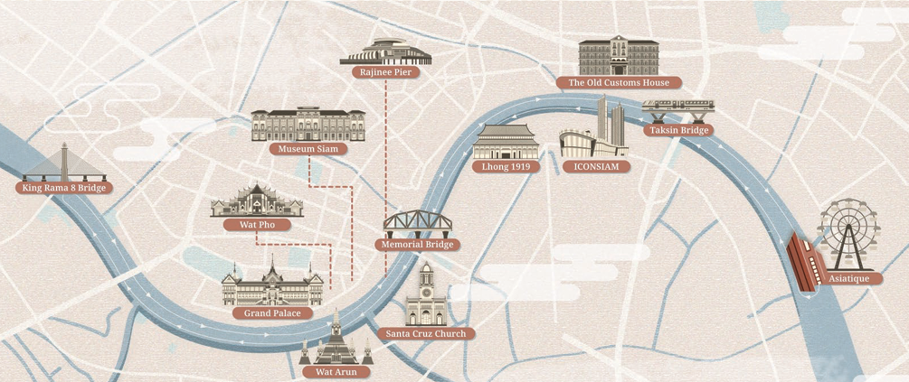 BTS 사판 탁신(Sapan Taksin)역 사톤(Sathorn) 선착장에서 아시아티크로 가는 셔틀 보트를 탑승하세요. (무료)